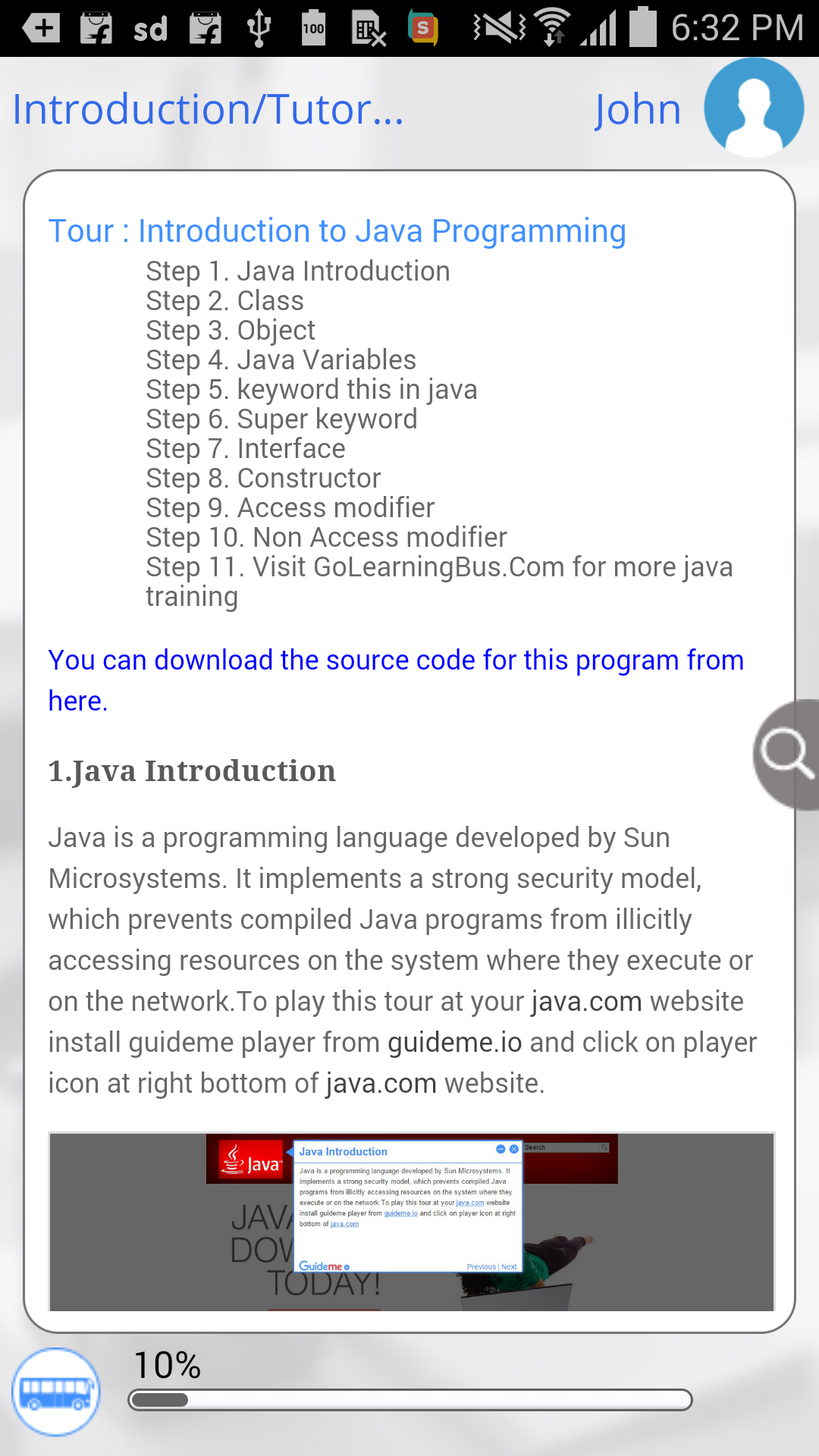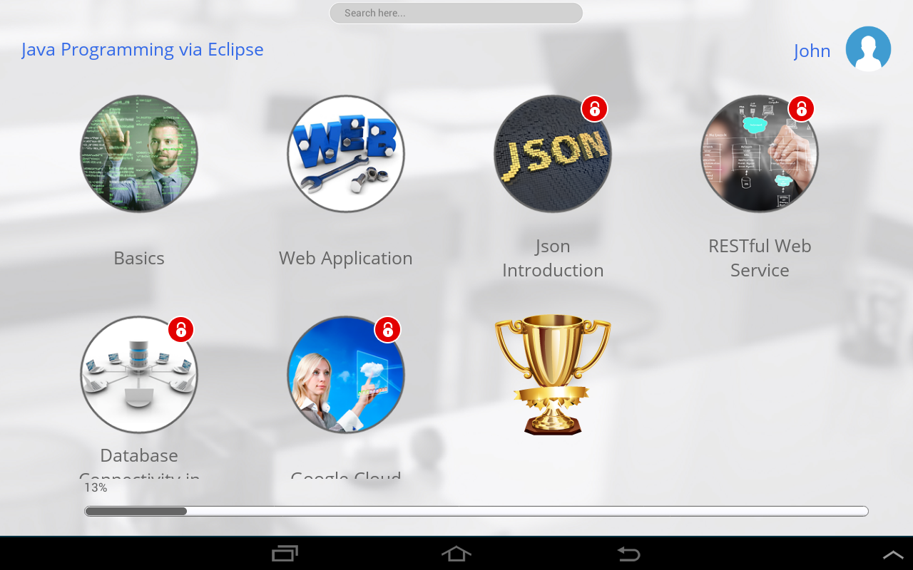 You have limited access to the content provided. For full access to the content, please login and purchase this application. This app provides a quick summary of essential concepts in Java Programming for Apache Tomcat and Google Cloud using Eclipse by following snack sized chapters: