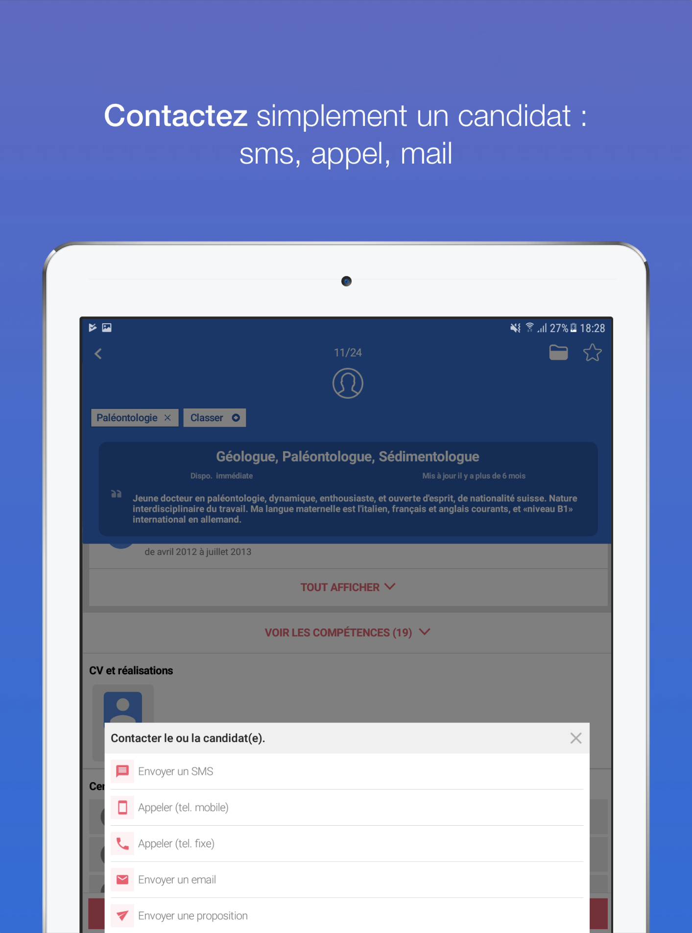 • view the profile of the candidates (experience, training, skills, availability, etc.) with a focus on their skills and strengths