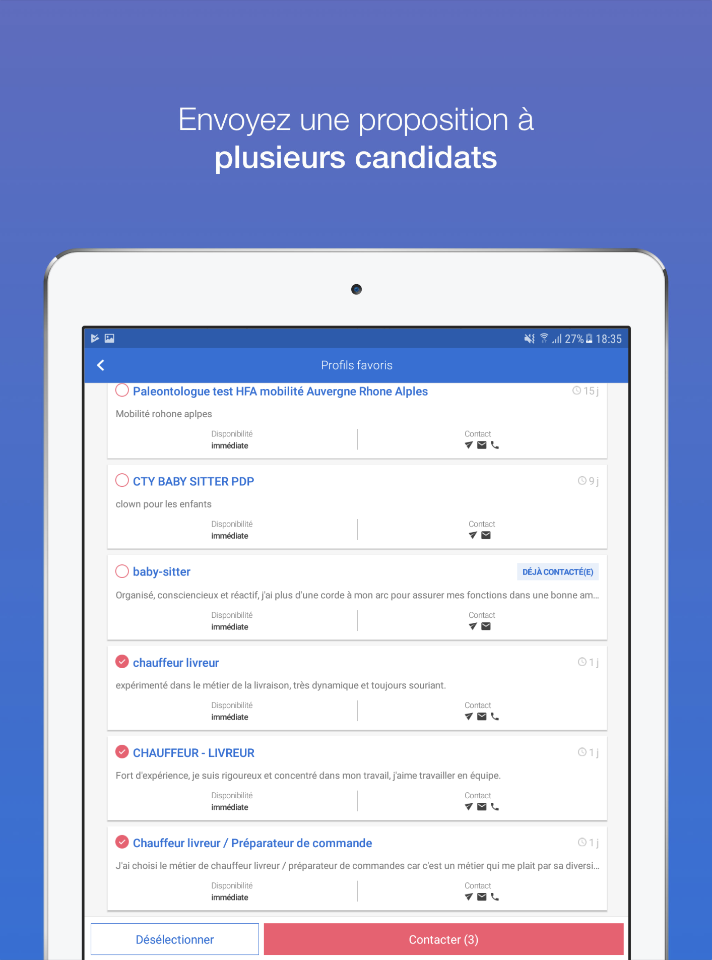 • send a proposal to candidates by email, SMS, telephone or via France Travail