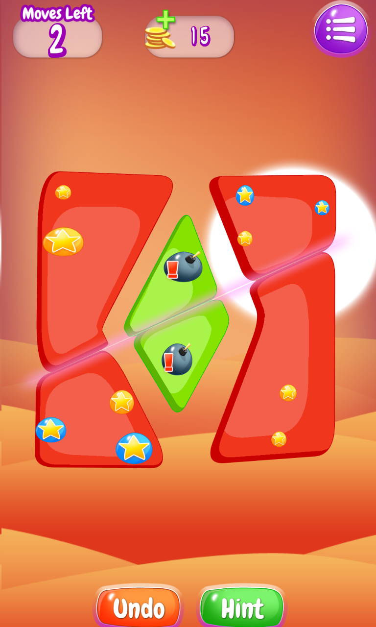 Slice the Jelly so that each slice contains only one star!Sounds easy? You will need a good dose of creativity, logic and visual skills to progress through the "sticky" levels. Get 3 stars for maximum rewards and use a hint only when you get stuck. Do you think you can get the perfect score in every level by collecting ALL stars ★ ★ ★? Find out now!