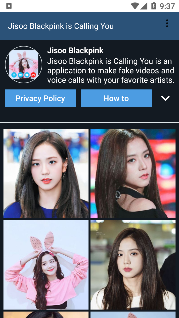 One of the Blackpink members is familiarly called Jisoo. He started his musical career when he auditioned for YG Entertainment in 2011. Jisoo first appeared on the small screen in Epik High MV - Spoiler + Happy Ending in 2014. Then he made a cameo in the 2015 drama The Producers with 2NE1 members, Sandara Park and Winner member, Kang Seung-Yoon. Only on August 8, 2016, Jisoo made his debut with the South Korean girl group, Blackpink. Blackpink began to be known to the international community after releasing the song DDU-DU DDU-DU. This song immediately exploded in the market and catapulted the girlband's name. Likewise with Jisoo. Jisoo Blackpink Menelponmu is a fake video call and voice call application that is designed to look like the real thing. with this application you can make video call hallucinations with Jisoo Blackpink. This application is designed with a modern UI, the appearance of the application is designed to resemble Instagram with a dark mode theme. Jisoo Blackpink Menelponmu application is very simple, light, fast and easy to use. How to use the application: + open the application + then a display similar to Instagram will appear + choose the photo of Jisoo Blackpink that you like + then in the action section, select video call / voice call + in the template section, select the theme of whatsapp, facebook or telegram + in the times section, select now + then select start video call If you like the Jisoo Blackpink Menelponmu application, you can give a good review and don't forget to share this application with your friends, you can share it via social media such as Facebook, Instagram, Twitter, telegram, beep, and whatsapp.