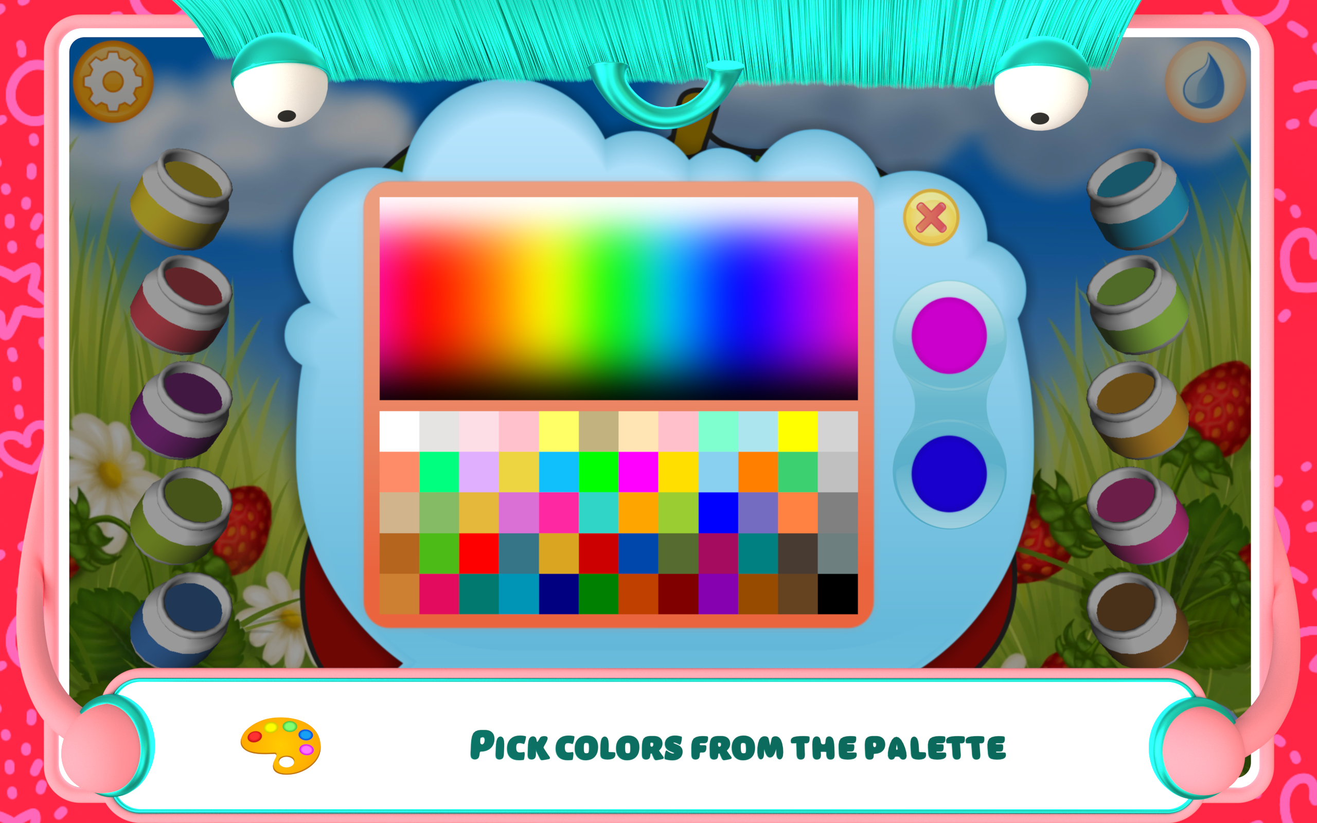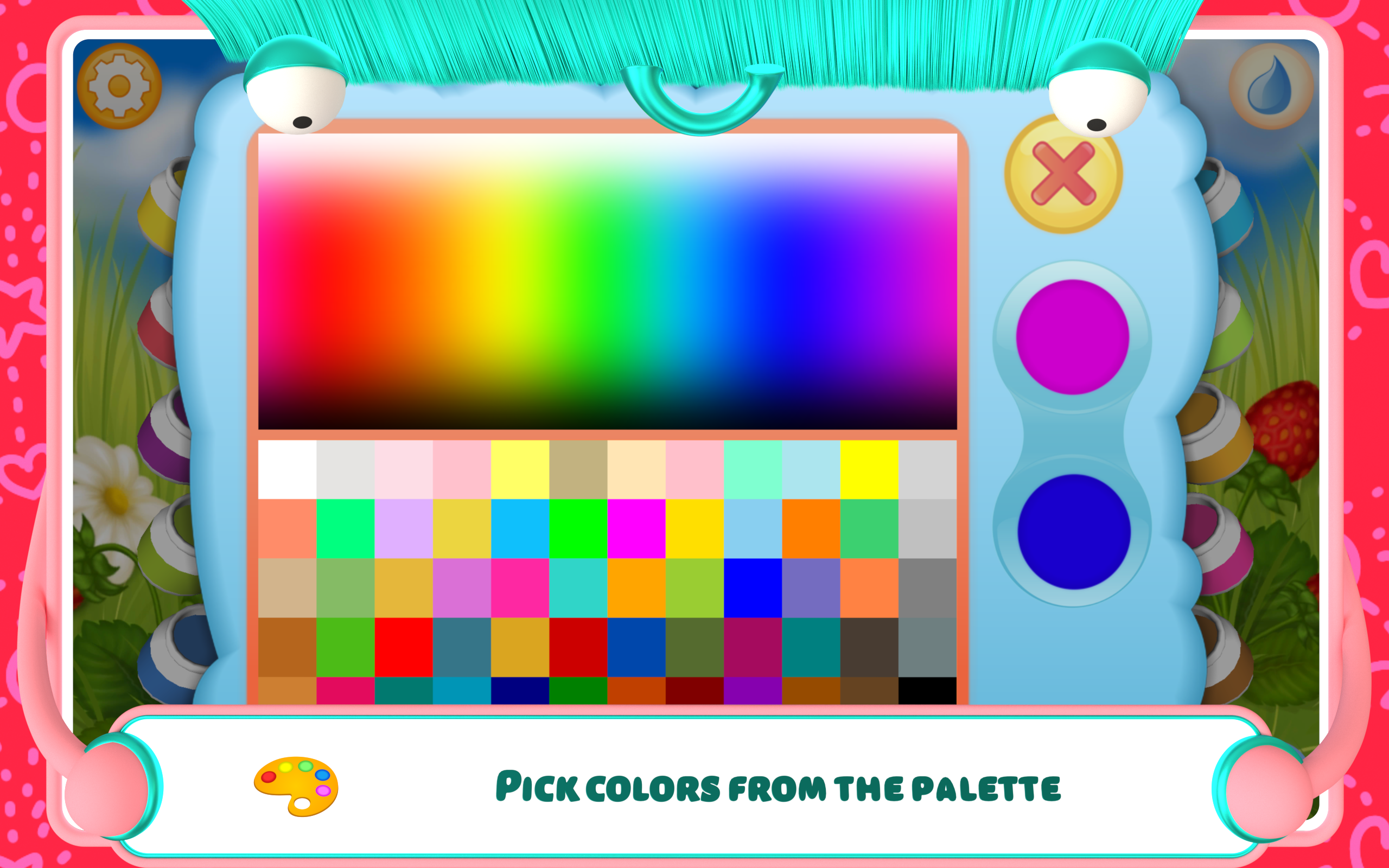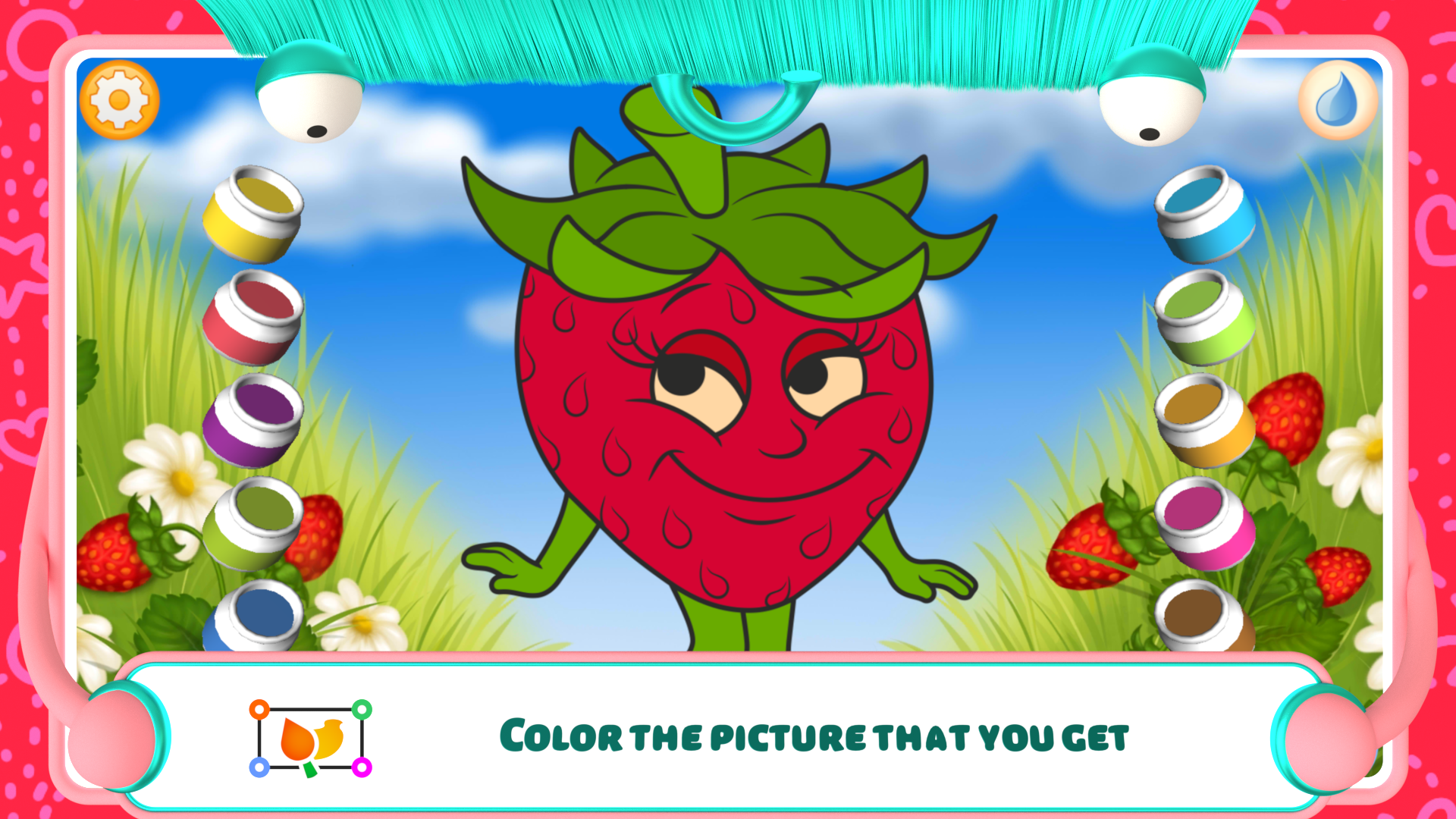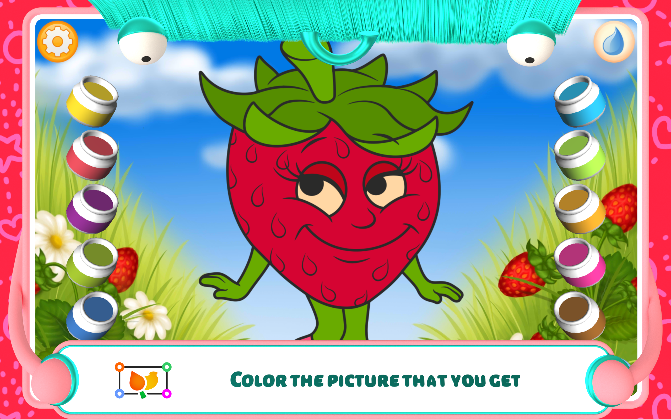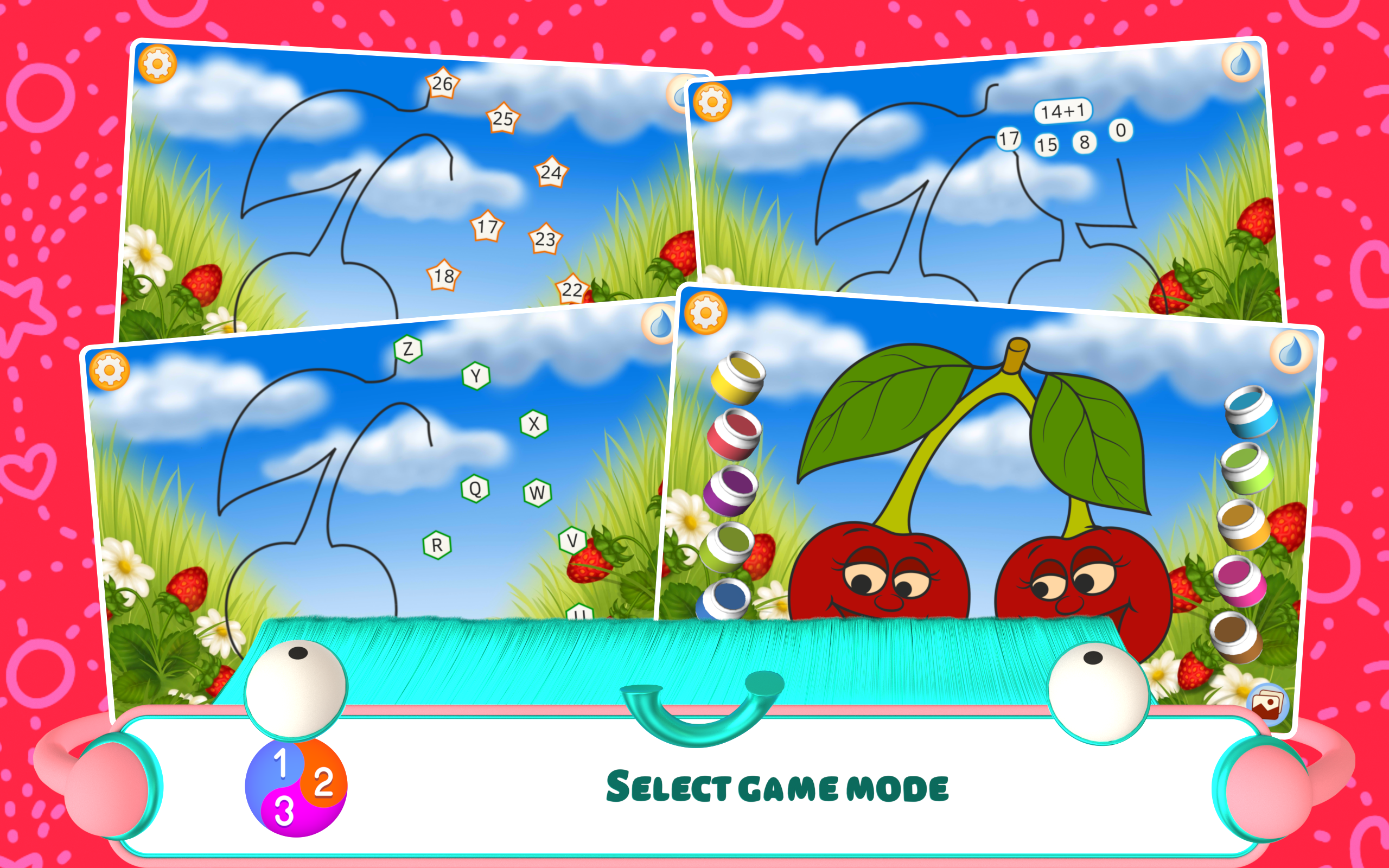 Delicious fruits, juicy berries, and wholesome vegetables are just some of the favorite delicacies of little boys and girls. After all, they have so many beneficial vitamins. And each of them is unlike the other. Red, blue, and green, large and small, hard and soft. Some are sweet, others sour, and still more are salty. You might think that each fruit has its own personality. Merry strawberries, clumsy cabbages, and carefree oranges. I wonder what they would be like if they could live among us? We decided to indulge our imaginations and presented each fruit in its own characteristic way. The result turned out to be very interesting and fun! Features: ◦ Connect points by numbers or letters ◦ When points are connected, you will see the silhouette of a hidden picture ◦ Once all the points have been connected, you can color the picture ◦ Choosing a wrong symbol three times in a row will bring up a tip ◦ Blue, orange, green or pink stars make the game even more exciting ◦ Easy-to-use palette that allows you to put together your own unique set of colors ◦ Colored pictures automatically saved on closing the program Connect points is a learning puzzle for small children. It helps develop thinking, improve memory and attention. The application has three game modes: by numbers, letters and coloring. Game modes with letters and numbers will be useful for kindergarten and pre-K kids. Connecting by numbers will help to easily memorize the order of numbers and learn to count. To do this, you need to consecutively connect circles with numbers starting from 1. As you connect circles in the right order, the silhouette of a hidden picture will become more and more visible. If three points are chosen incorrectly, a tip will pop up. Once all the points are fully connected, the picture will become fully visible and you’ll be able to color it. Those studying the alphabet can choose to connect points by letters. It is important that children know letters as early as possible, since it is essential for learning to read and write. But knowing the order of letters in the alphabet is also very important! This can be achieved by connecting circles with letters in the right sequence. The coloring mode will be especially appreciated by young artists. In this mode, you can proceed to coloring pictures without connecting points. To make the process even more exciting, you can change any predefined color. To do this, press and hold the paint bucket and choose the necessary color from the palette.