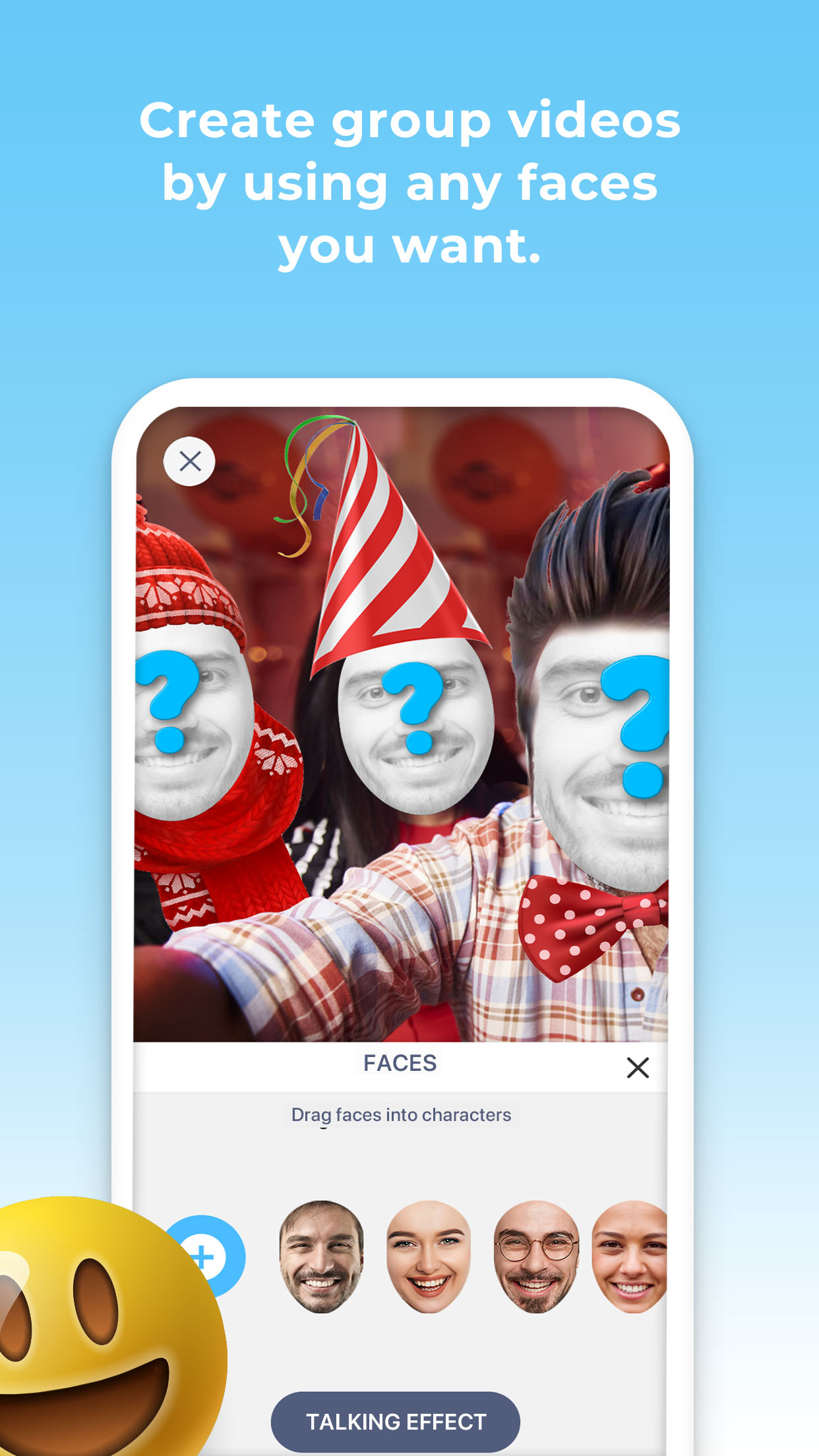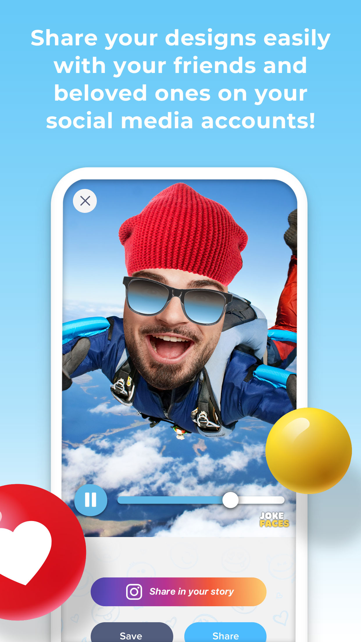 Joke Faces is a user-friendly and very fun application that allows you to create your own videos. It enables you to choose a video from various categories and swipe faces in the video with other faces you want. Joke Faces offers you an opportunity to create without limits. You can take a selfie or a photo of your boss, your cat, even a celebrity, and make them Joke Faces stars! You can create special content in several subjects such as birthday, anniversary, baby shower, love message or wedding proposal and you can surprise your beloved ones. Joke Faces lets you create single or group videos and share them on Instagram, YouTube, Facebook, WhatsApp and many more social media platforms. Some of the great features of Joke Faces: - A collection of videos and animations which is regularly updated - Take photos and selfies, and upload from your photo gallery - Save GIFs and videos to your camera roll - Share them on platforms like Instagram, Facebook and WhatsApp - GIF and mp4 output options - High resolution output Come on, start having fun right now! Make all your messages funny with Joke Faces! About In-App Purchases and Subscriptions We offer both a 3 days free trial period and in-app purchases that may require a specific charge to access additional features within. Our Premium version provides unlimited access to all features. The subscription packages we offer are as follows: Monthly Package: Current subscription price is $14.99 /month. Our Monthly Package offers a 3 days free trial period, within this period you can cancel at any time without commitment. However, Subscriptions will automatically be renewed every month if you decide not to cancel your plan and continue to enjoy our Premium features. (Prices are in U.S. dollars, may vary in countries other than the U.S. and are subject to change without notice.) Free Version: Allows limited usage. Trial Version: With the free trial version of the Joke Faces app, you can have unlimited access to all the features of the app. After the end of the trial period, the package fee will be charged, and you will be upgraded to the paid version. You can cancel the free trial version from your Google Play account at any time during the trial period. For detailed information, please visit the following address: https://support.google.com/googleplay/answer/7018481 Paid Version (Premium Version): You can purchase a subscription package and upgrade to the paid version of Joke Faces at any time. In our paid subscription, you can have unlimited access to all the features of the app without any ads. You can cancel the subscription you have purchased from your Google Play account. For detailed information, please visit the following address: https://support.google.com/googleplay/answer/7018481 When you purchase a subscription package, the fee is charged to your Google Play account and it will vary from country to country. You will be clearly disclosed the subscription fee amount before completing the purchase. Subscriptions with in-app purchases will be renewed monthly, according to the renewal scheme of the selected payment plan. To terminate automatic subscription renewal, you must deselect the automatic subscription renewal option 24 hours before your subscription expires You can cancel automatic renewal from your Google Play account settings at any time you want https://support.google.com/googleplay/answer/7018481 Privacy: http://jokefaces.mimozabilgi.com/privacy/ Terms of Use: http://jokefaces.mimozabilgi.com/tos_google/