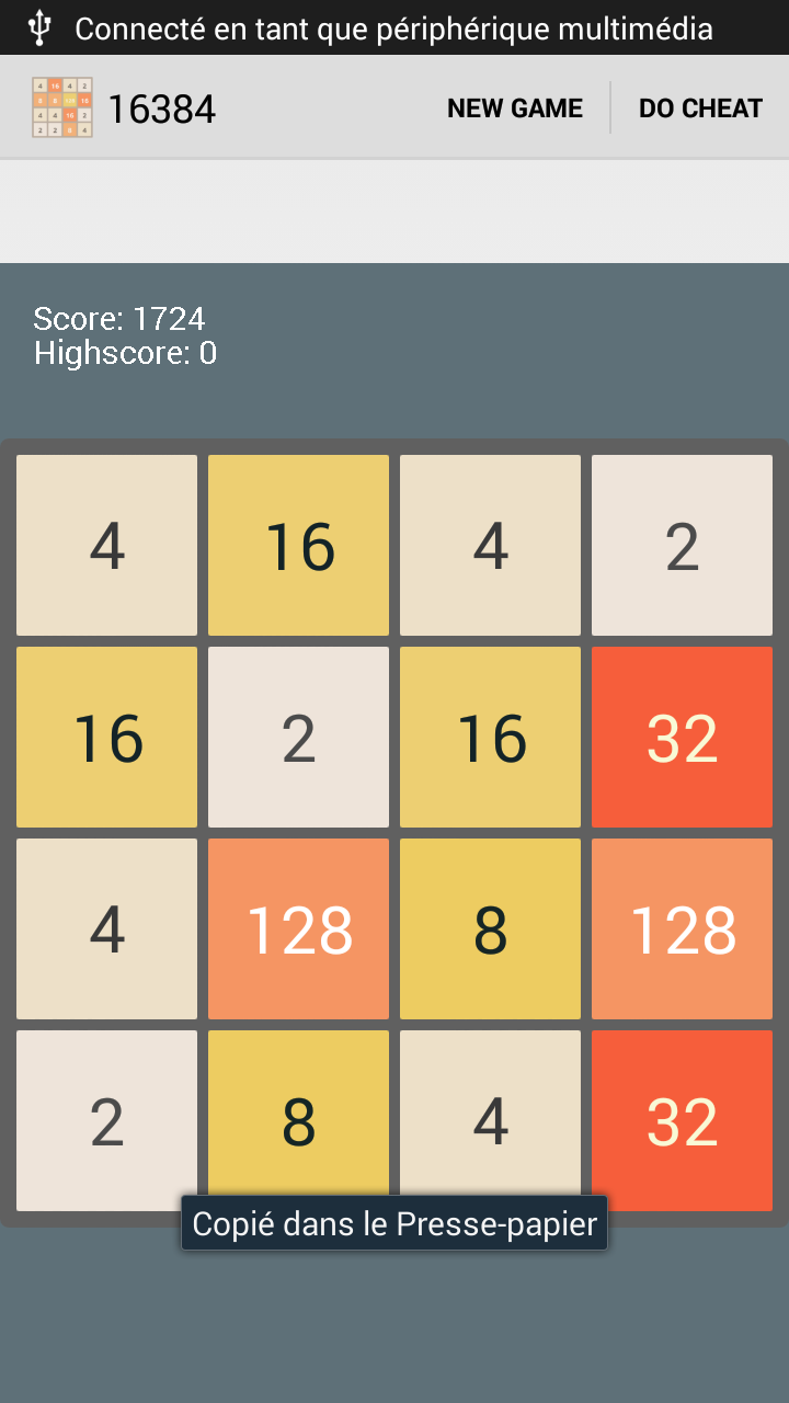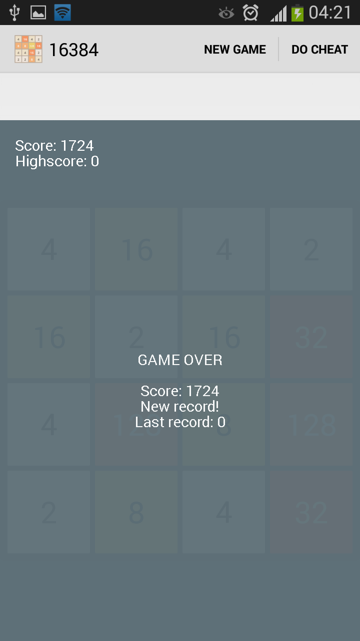 Description The 16384 app is a fun, addictive and a very simple puzzle game. Join the numbers and get to the 16384 tile! HOW TO PLAY: Swipe (Up, Down, Left, Right) to move the tiles. When two tiles with the same number touch, they merge into one. When 16384 tile is created, the player wins! Please give us feedback in comments, we promise we will address it! Features : - Game is automatically saved - Added animation, default on - High score - Completely native - Clear and simple UI Inspired by: https://github.com/lanus1401/2048