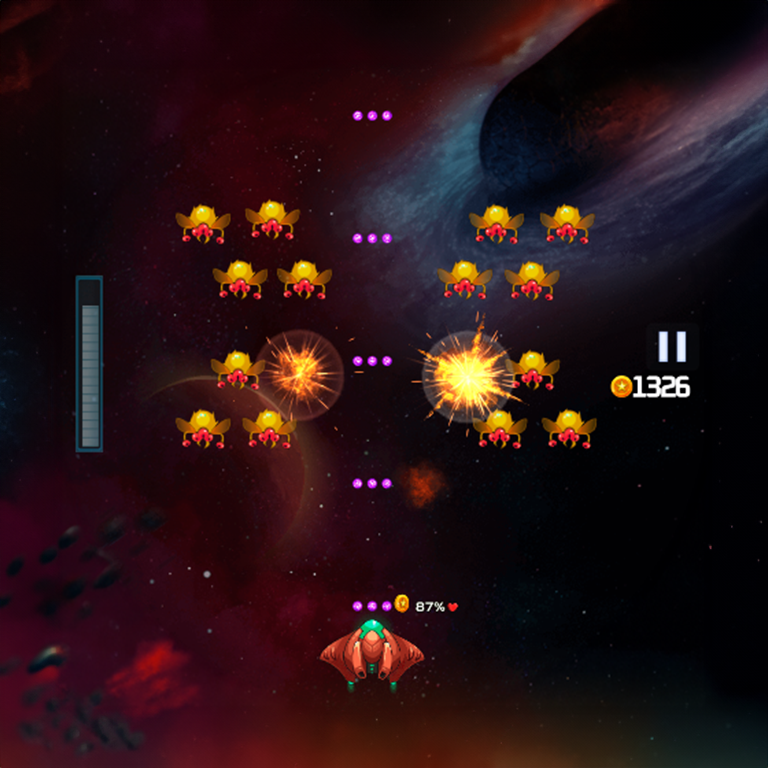 In Galaxy Shooter - Invader War, battle your way through infinite enemies and shoot them down with your fighter! Fight against ultimate Bosses and defeat them to advance to the next level!