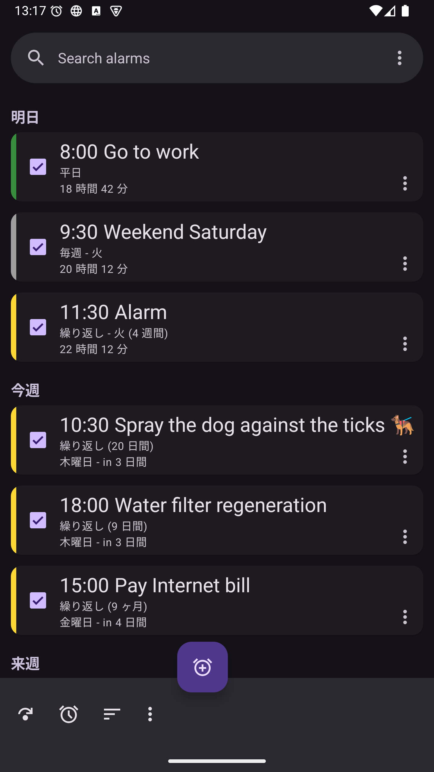 目覚まし時計:カレンダーとタスク管理