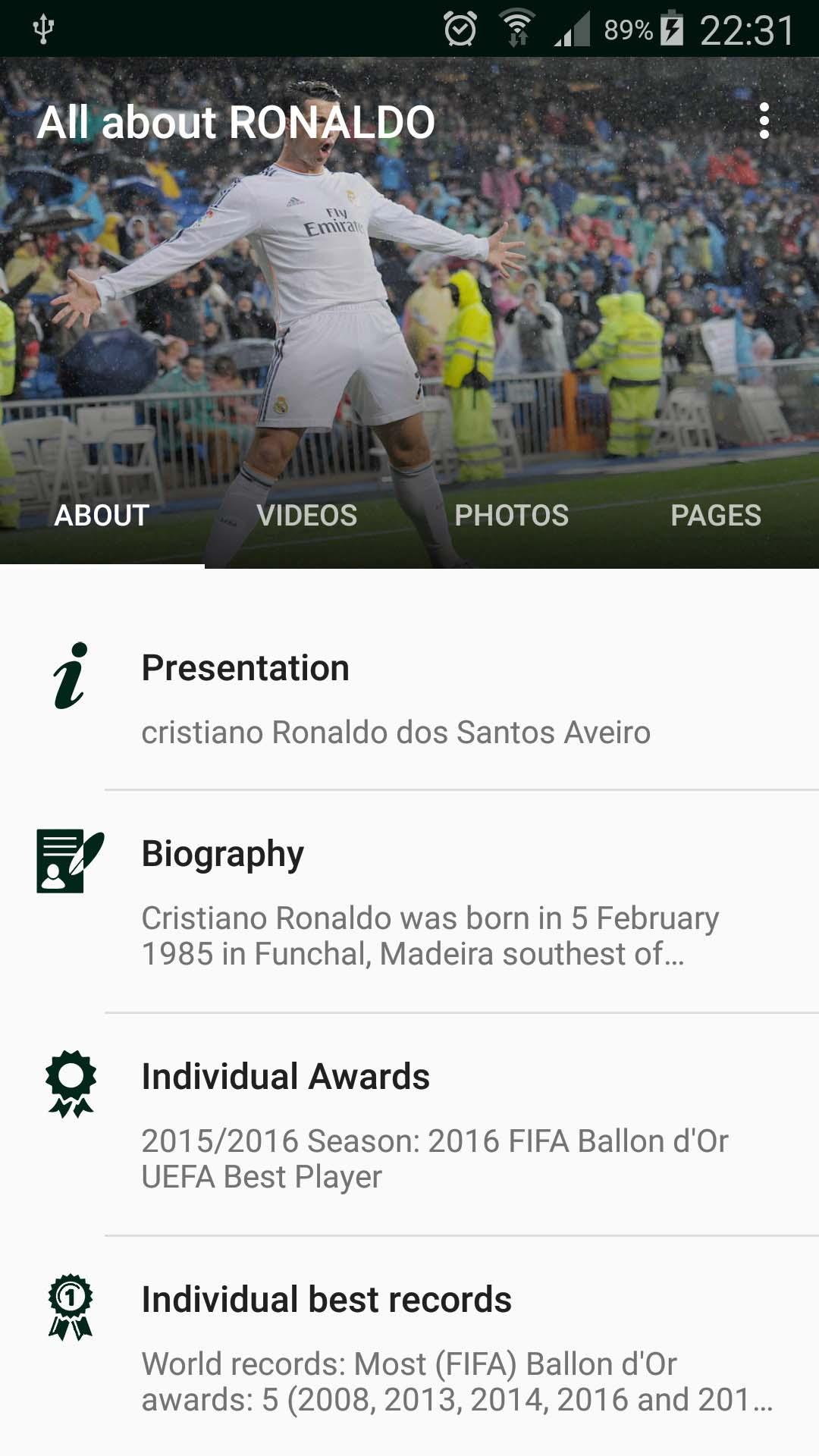 This application offers everything you want to know about the best Football player Cristiano Ronaldo: