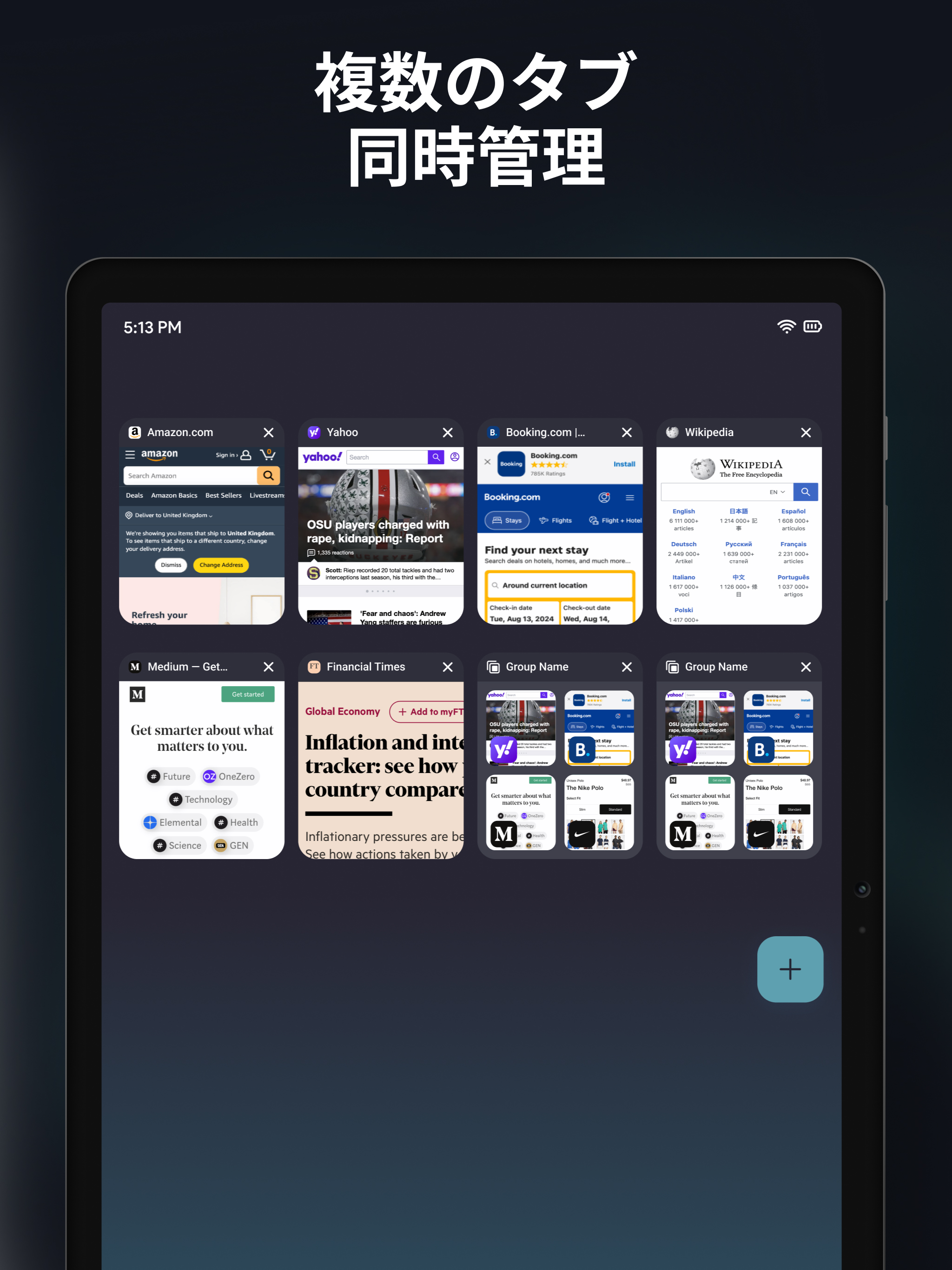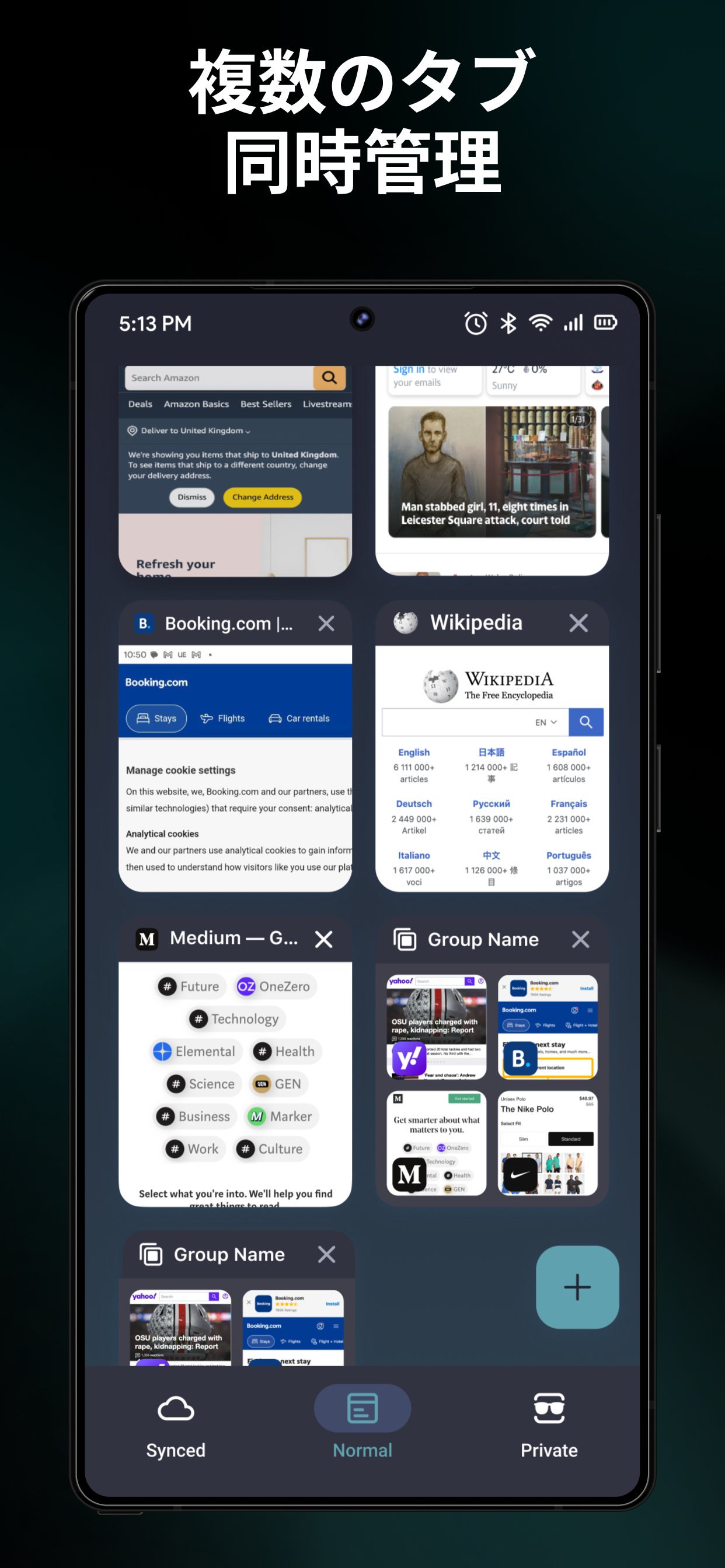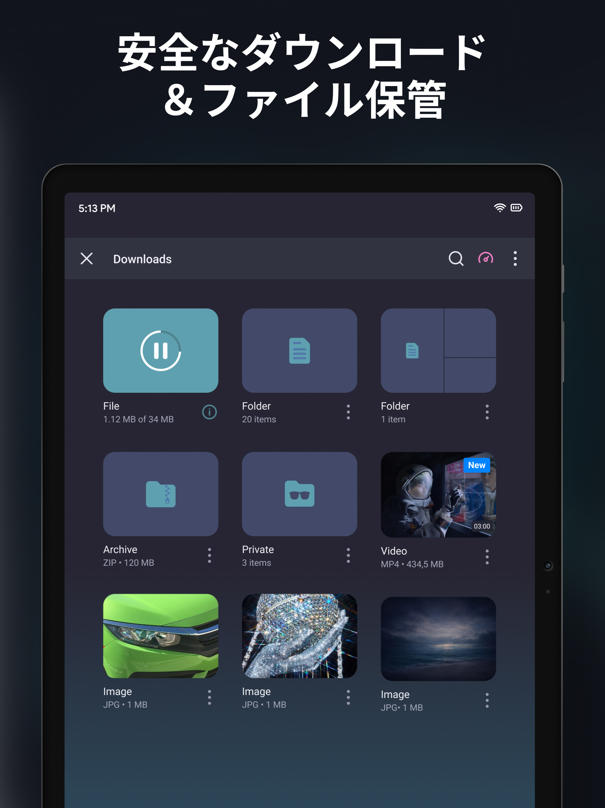 ロックされたプライベートタブ機能で、閲覧履歴をプライベートかつ安全に管理しましょう。指紋認証やパスコード認証を使って、大切な情報を保護します。さらに、不正なアクセスからファイルを守るため、プライベートな保管庫にファイルを保管することができます。