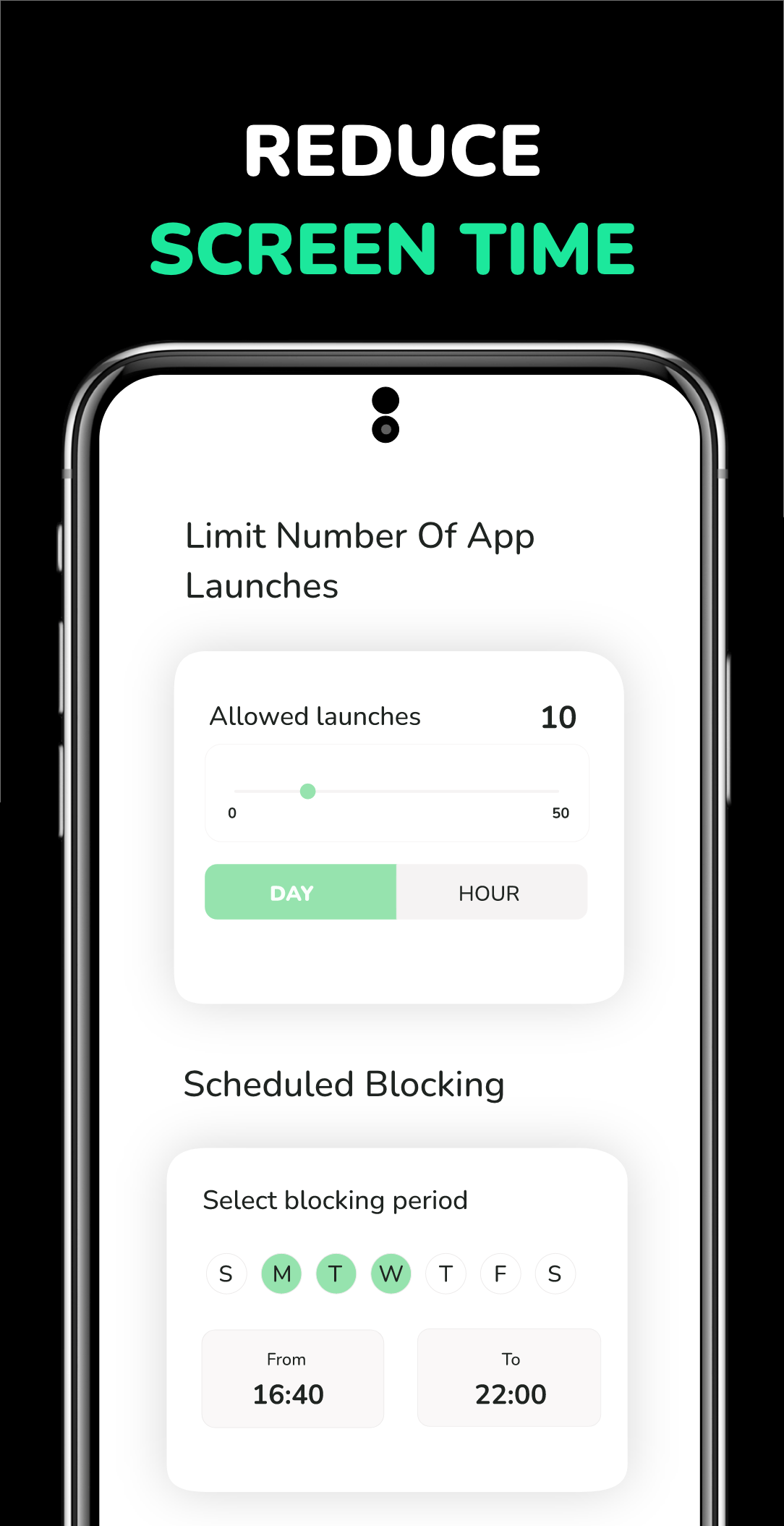 With App time limit and screen time blocker features, you can set custom schedules and limit screen time effortlessly. Whether you're on a mission to go unplugged, embracing an Ofttime, or simply striving for balance, our app ensures you stay in control.
