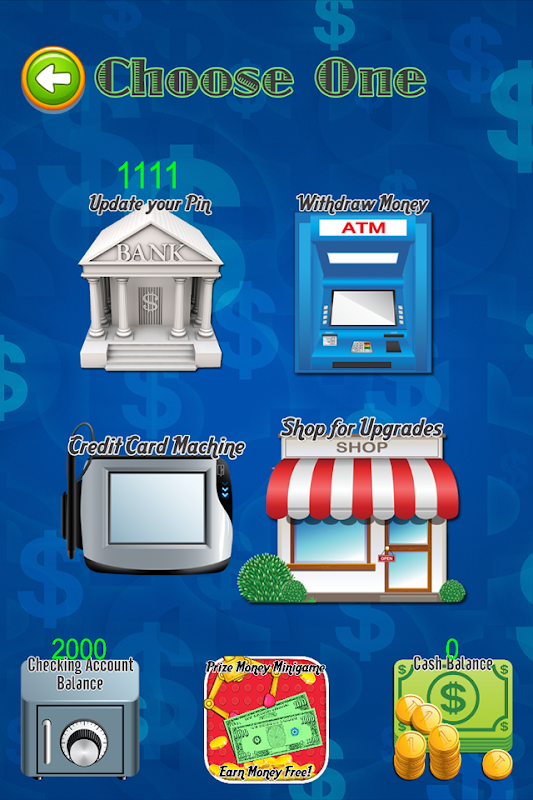 ATM Simulator - Money, Cash, Checking Account & ATM Games & Simulator make learning about ATM machines fun, and the best part is, it's free with daily bonuses! ATM simulator allows you to apply for a checking account, & pretend to use an ATM machine to take out money, deposit cash, and get daily bonuses to keep your balance in check! Apply for a debit card at the bank, and get your 2,000 to start keeping balance! Go to the ATM Machine, and take out money, and keep track of your checking account balance and cash balance! Make cash deposits, and bring your checking account balance back up again! Keep track of your Pin #, or go to the bank and update it! You get daily bonuses for free, but you can also head over to the shop for additional bonuses! Just a fun way to get accustomed to learning how to use an ATM machine, and a fun game for kids to play!