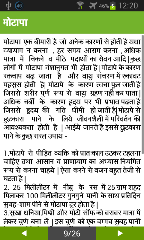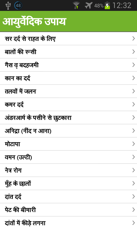 When diet is wrong medicine is of no use. When diet is correct medicine is of no need. ~Ayurvedic Proverb Ayurvedic Remedies is the oldest form of remedies which originated from India. This ancient form of treatment helps you in the treatment of almost every disease and at the same time helps in maintaining the mental well being of your health. For every disease or illness, there are more than two to three are available for treatment. The best part of using this form of treatment is first of all, there are no side effects associated with it. And secondly, there is the ease of preparing and using it. Ayurveda is very useful for initial treatment and can be as utilized as a home remedies for a healthy life. How is this App Different from the Rest? Through this app, you will not only get access to the remedies or the treatment. You will be provided with ► Description of the Disease ► Image for each Disease ► Symptoms for each Disease ► Remedies for each Disease ► Causes for each Disease ► Do's and Don’ts for each Disease This will be helpful in the thorough understanding of the disease and its effective treatment. Install this app TODAY and get access to the remedies even without internet connection. You can even share the treatments with your friends and family.