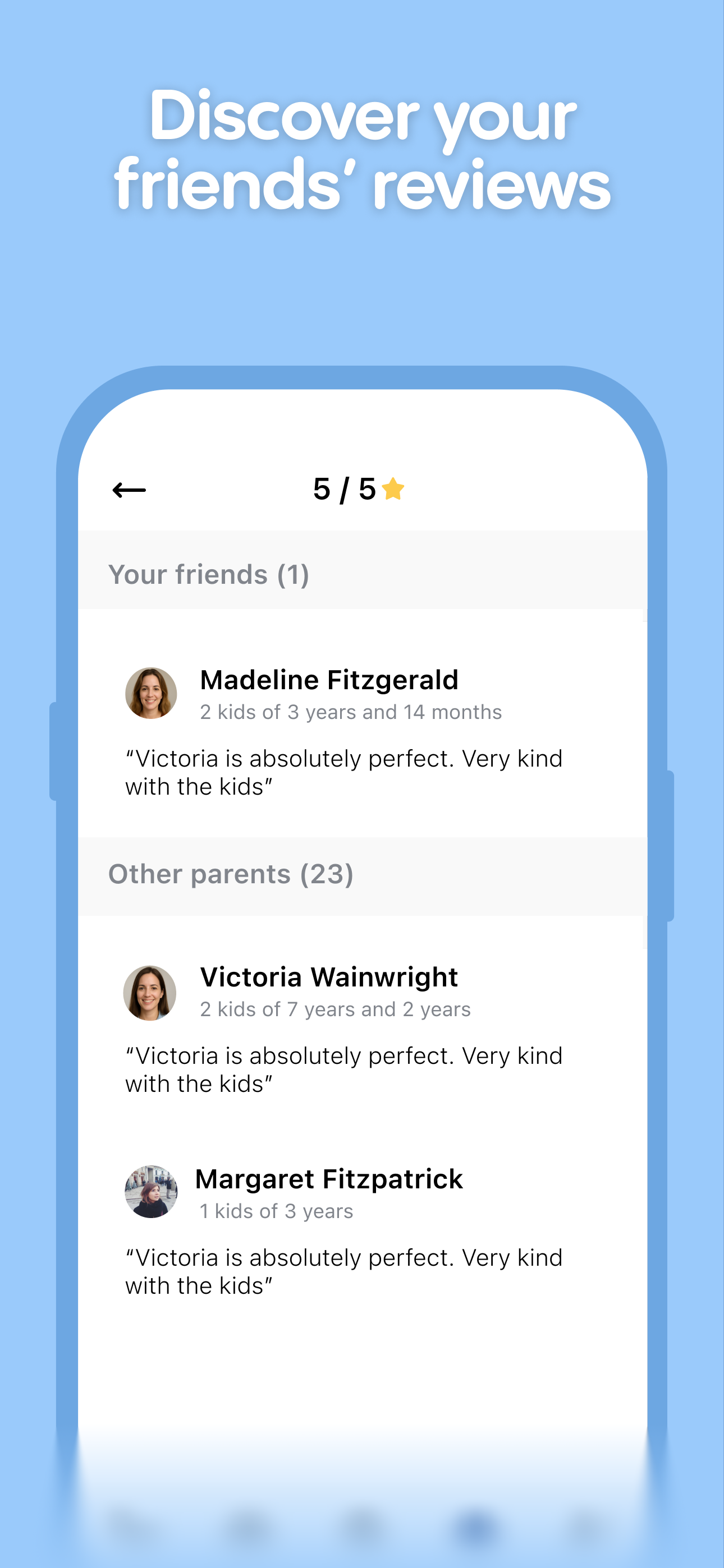 + アプリを通じて予約したベビーシッターを評価し、レビューを残します。