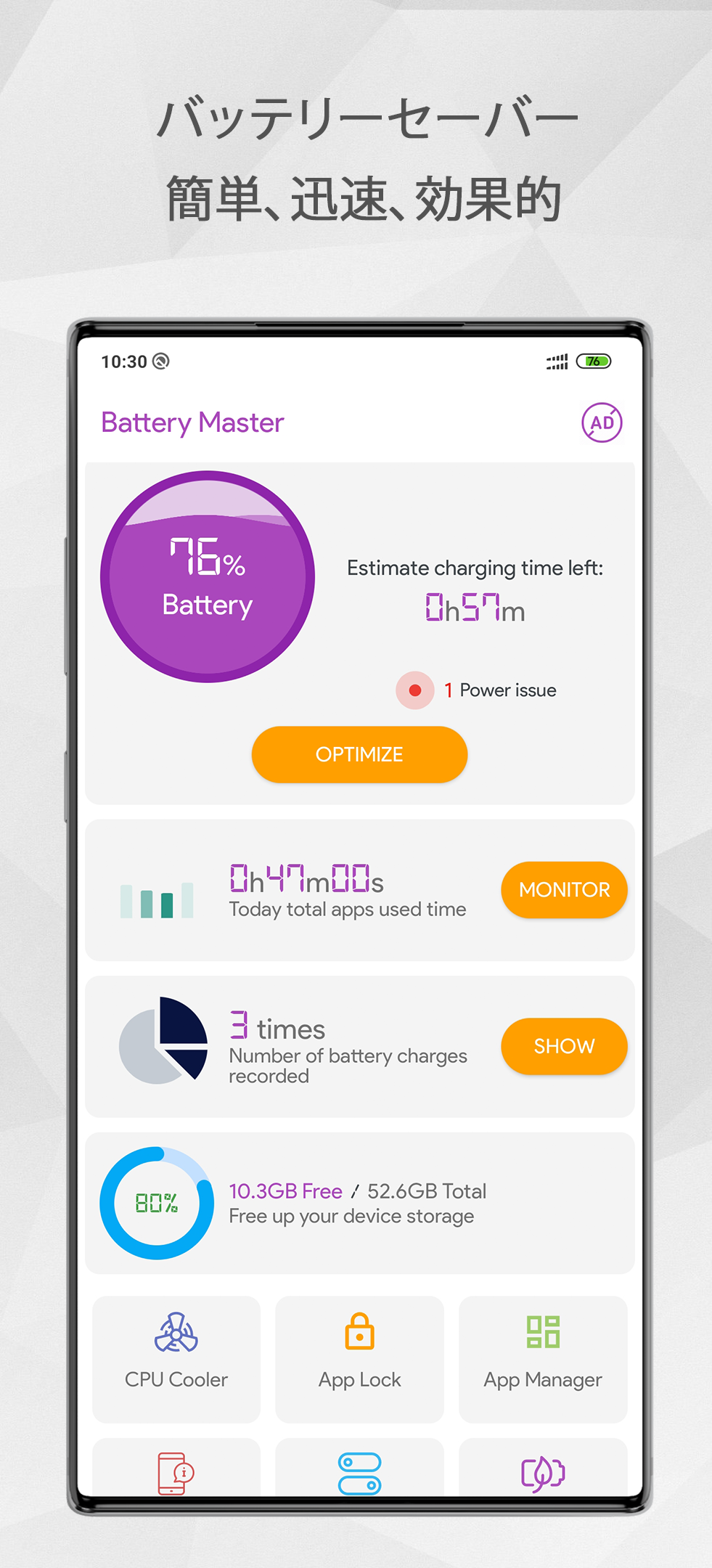 マスターバッテリーセーバー-アプリロック-スーパークリーナー - Battery Saver
