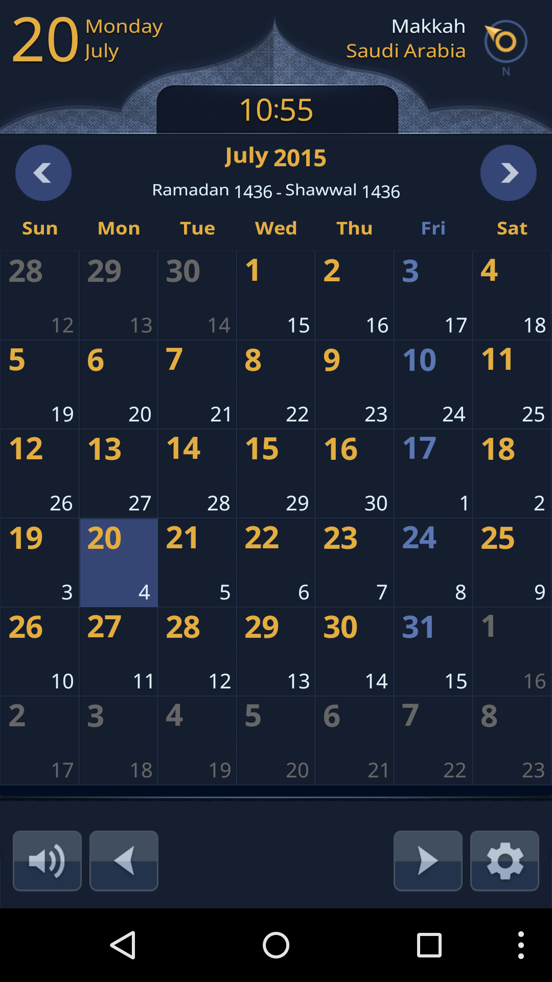 * Dual Calendar Display (Hijri & Gregorian calendar)