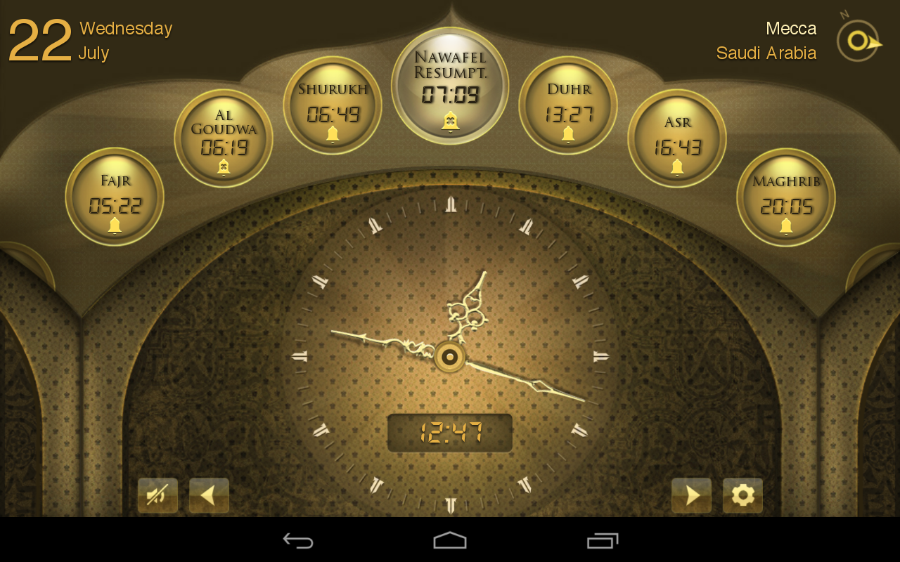 After the Athan, a graphic countdown will inform about the coming of the next prayer.