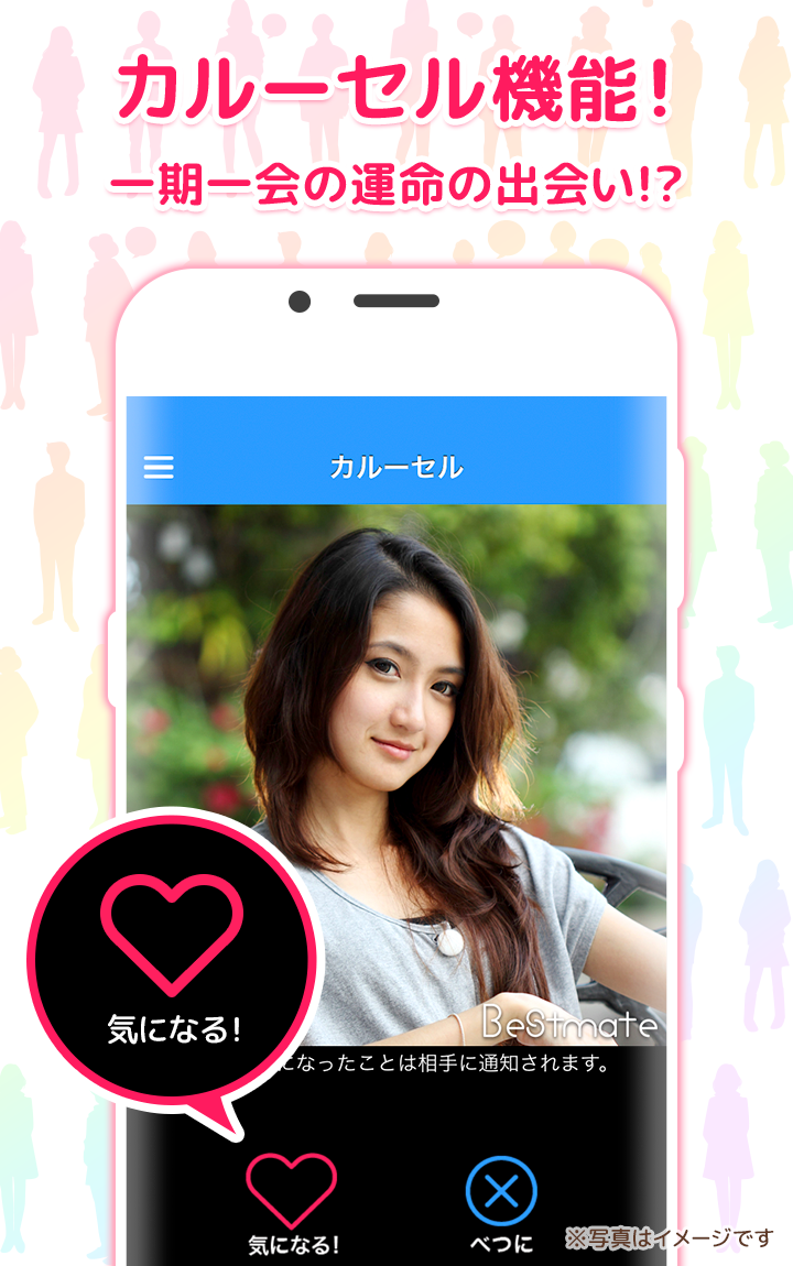 素敵な人々と出会えるアプリ「Bestmate」-恋人探し・友達探し、出会いアプリの決定版!-大手老舗出会いサービス「ASOBO」提供会社がプロデュースする出会いアプリです。