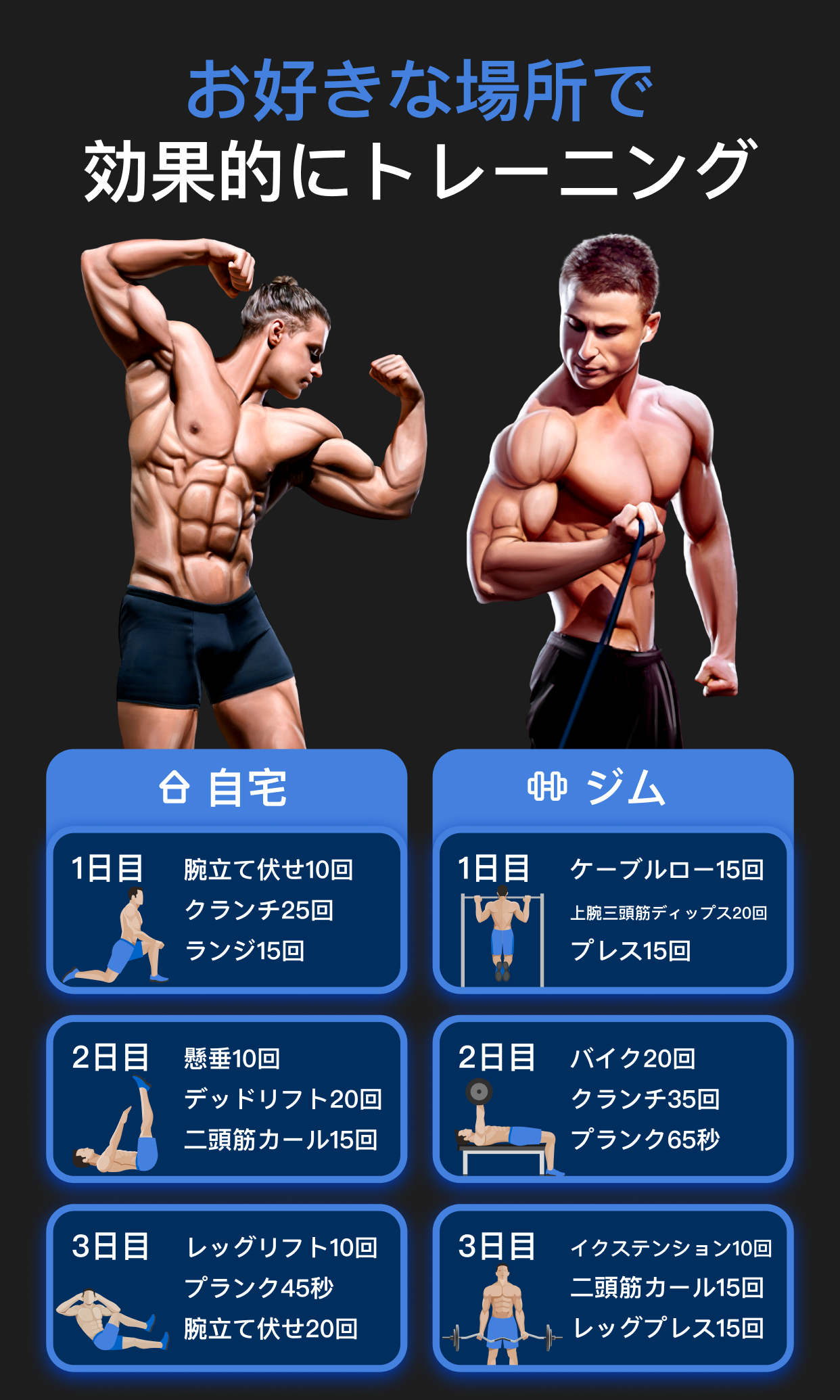 -ジムや自宅できる豊富なワークアウト