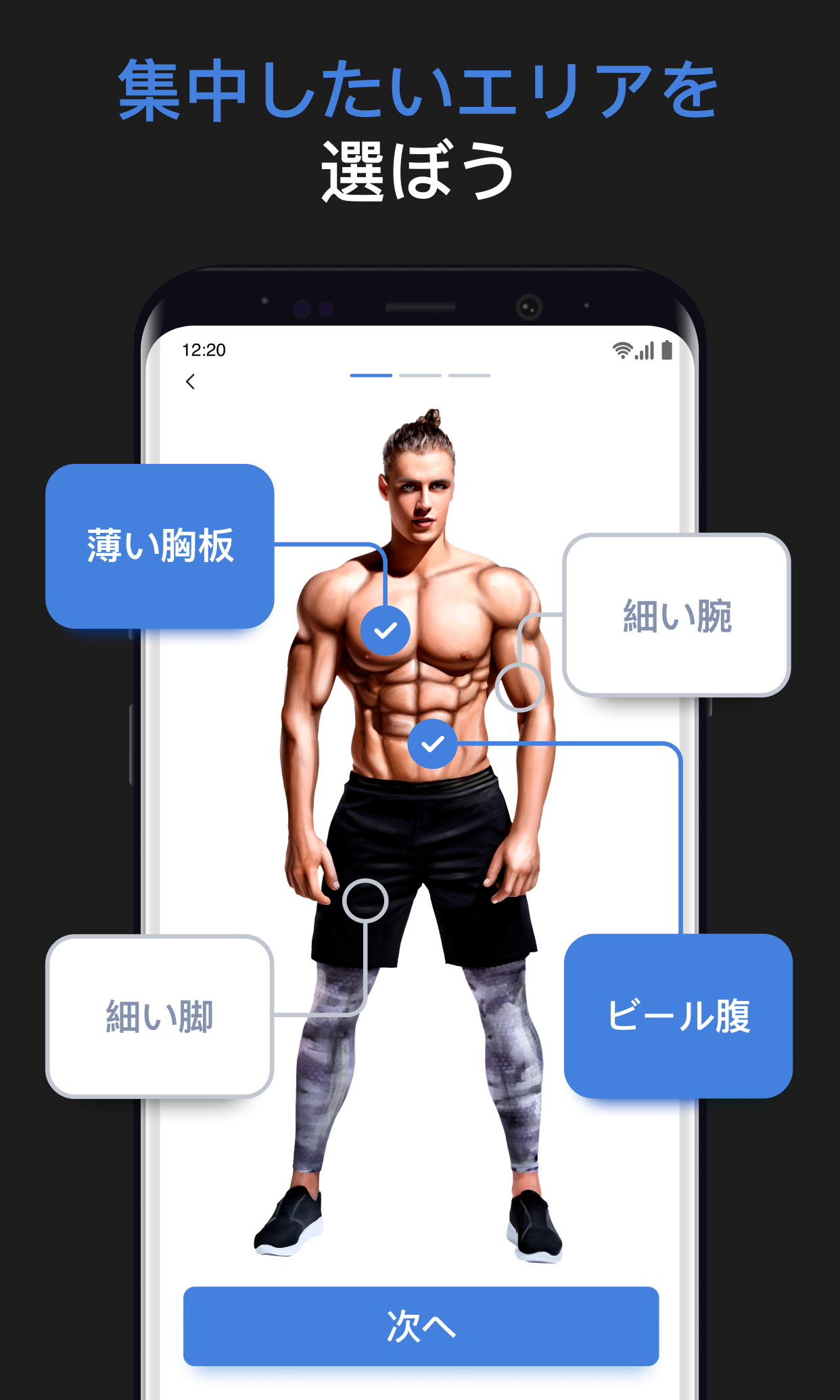 をアプリを使って、筋肉を増強して、体脂肪を減らし、やる気を維持