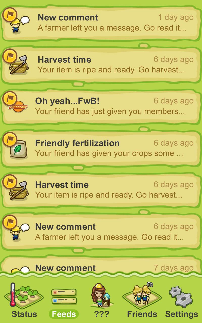 * See what's been going on with your farm on the "feed" tab