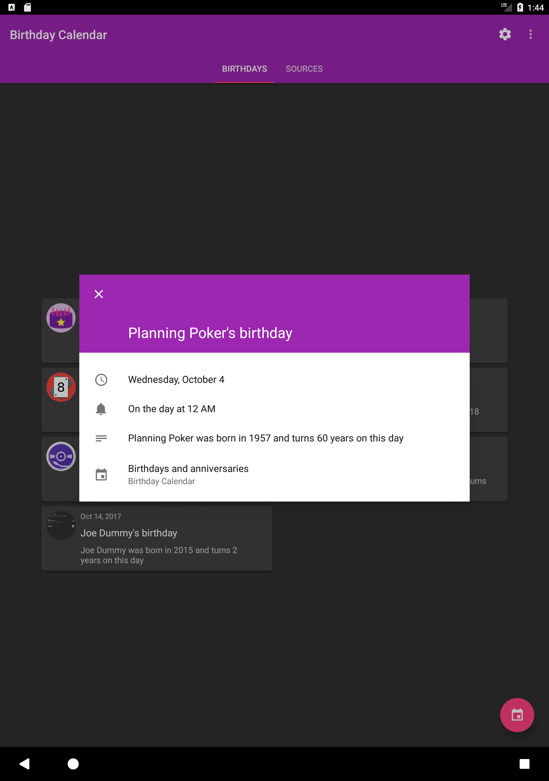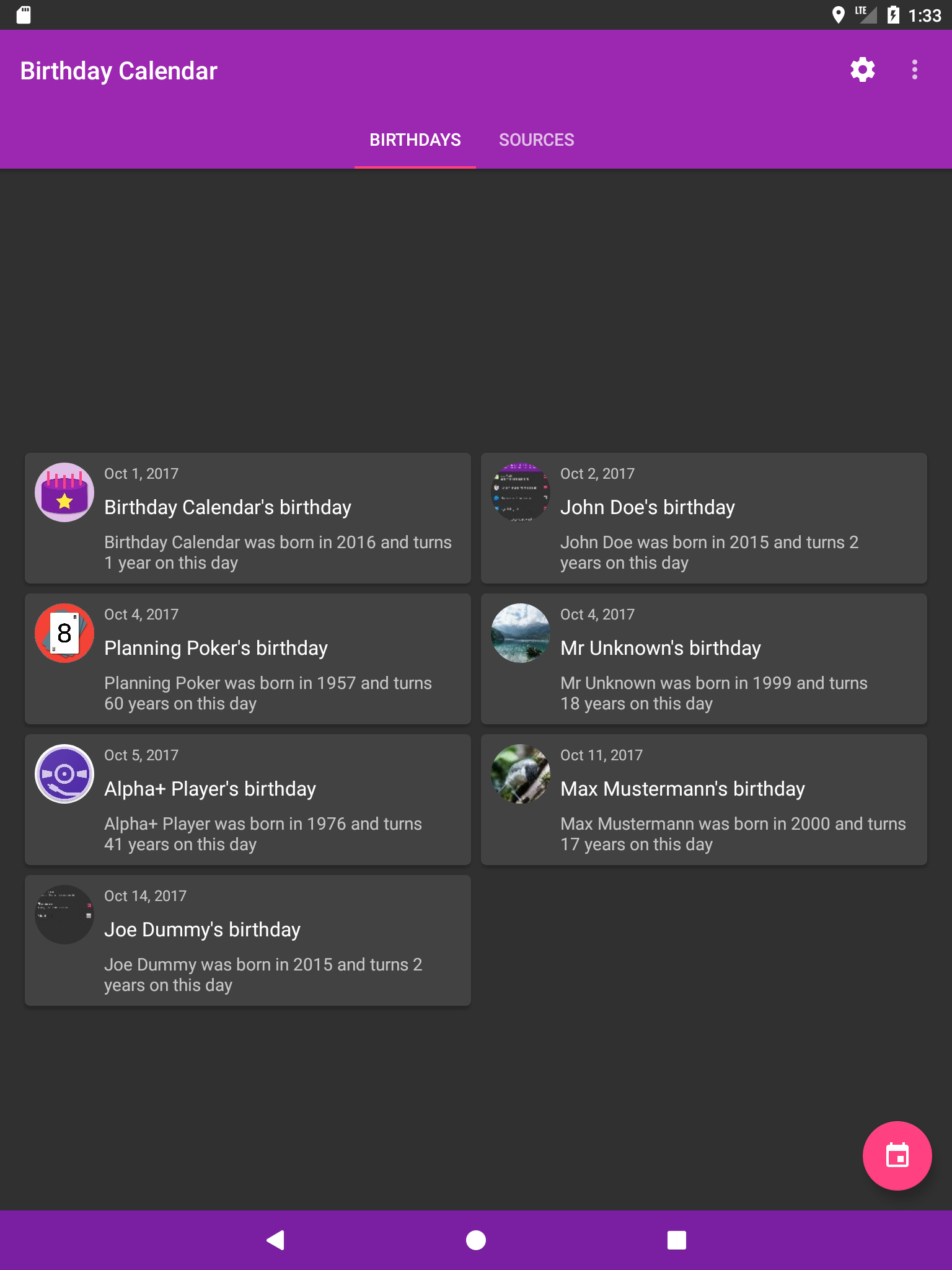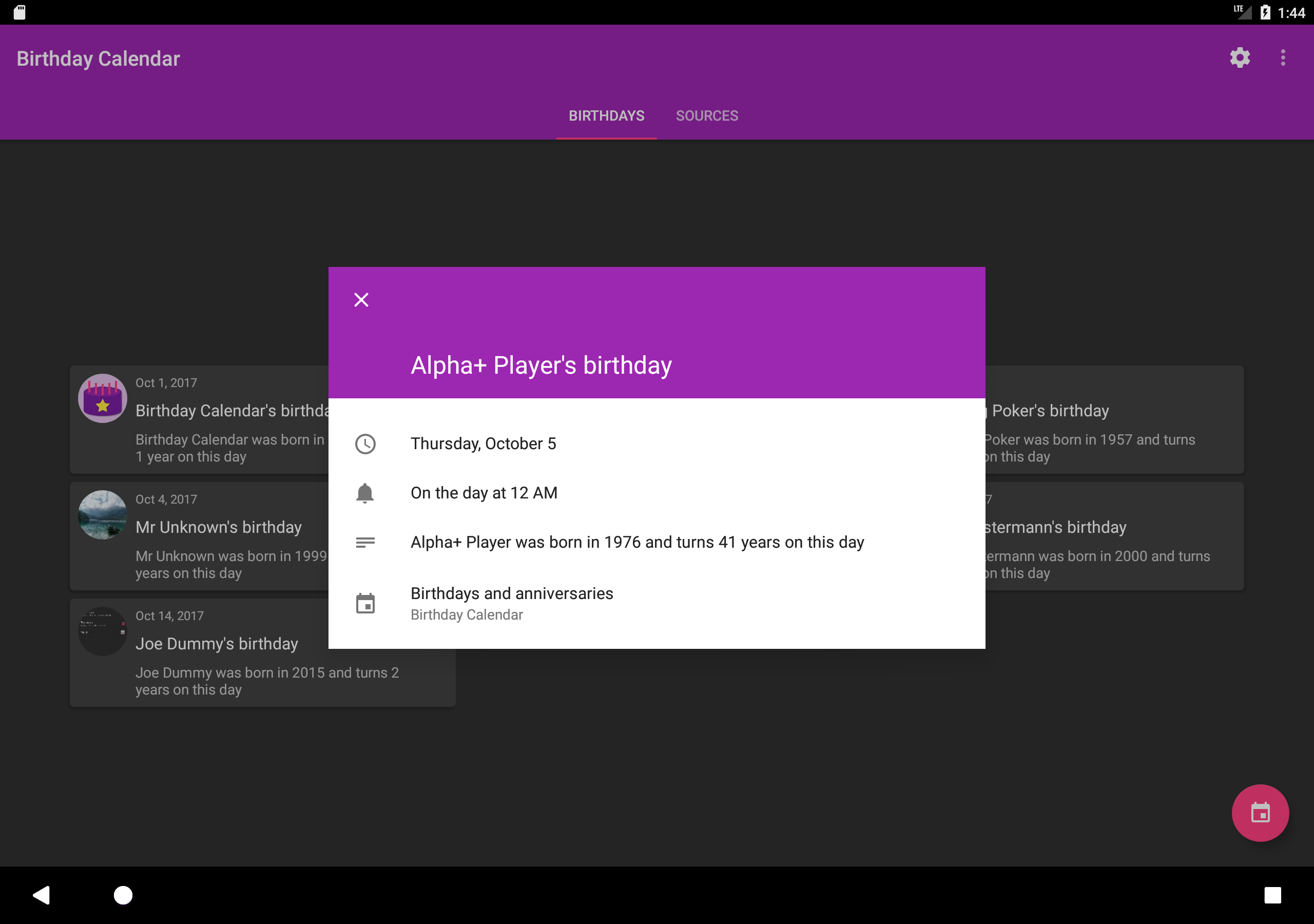 Birthday Calendar