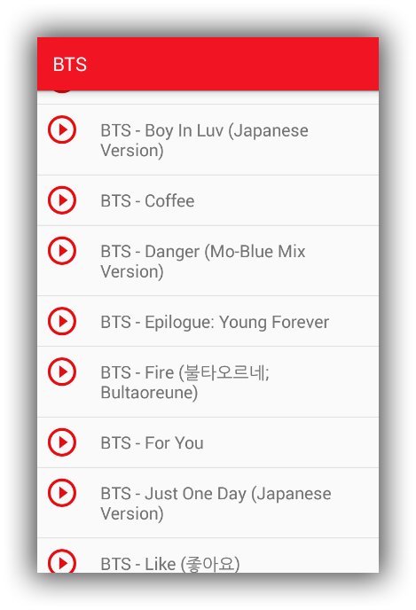 Applications lyrics and songs from top singer Bangtan Boys very popular. This application will allow you to memorize or listen to songs you like. please download and install for free on your android. we wish you happy and entertained. -Song & Lyrics Full Album