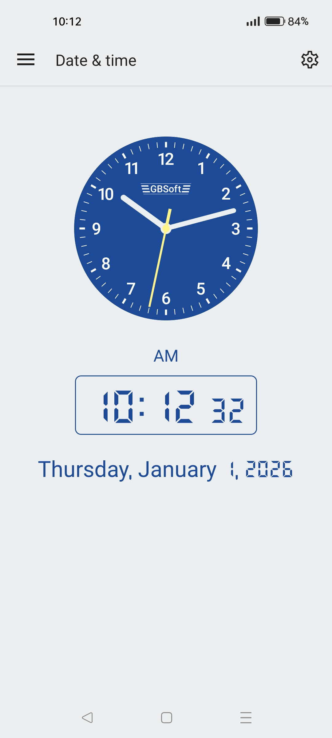 You can also add an elegant analog clock widget to your home screen (second hand available on Android 12+). The app supports both 12-hour (AM/PM) and 24-hour formats.