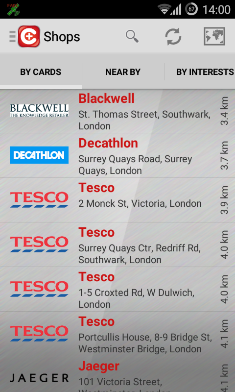 • The possibility to rate nearest shops