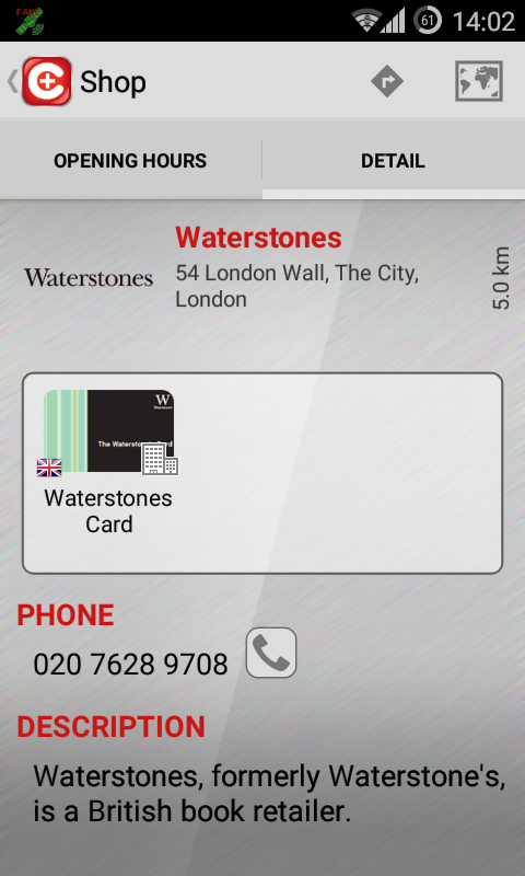 • You can display detailed information about shops (opening hours, address and phone number with a function click to call)