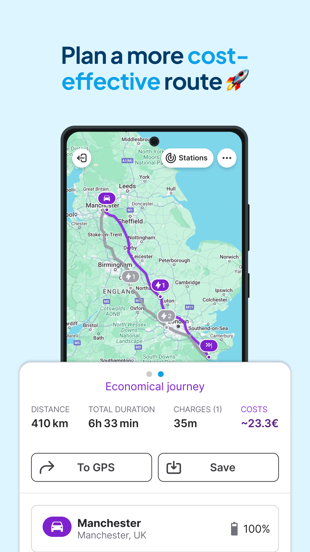 強力なフィルターは、無料の充電ポイント、ベストスコア、急速充電ステーション、お気に入りのネットワーク、高速道路のみなど、要件を満たす充電ステーションを見つけるのに役立ちます。
