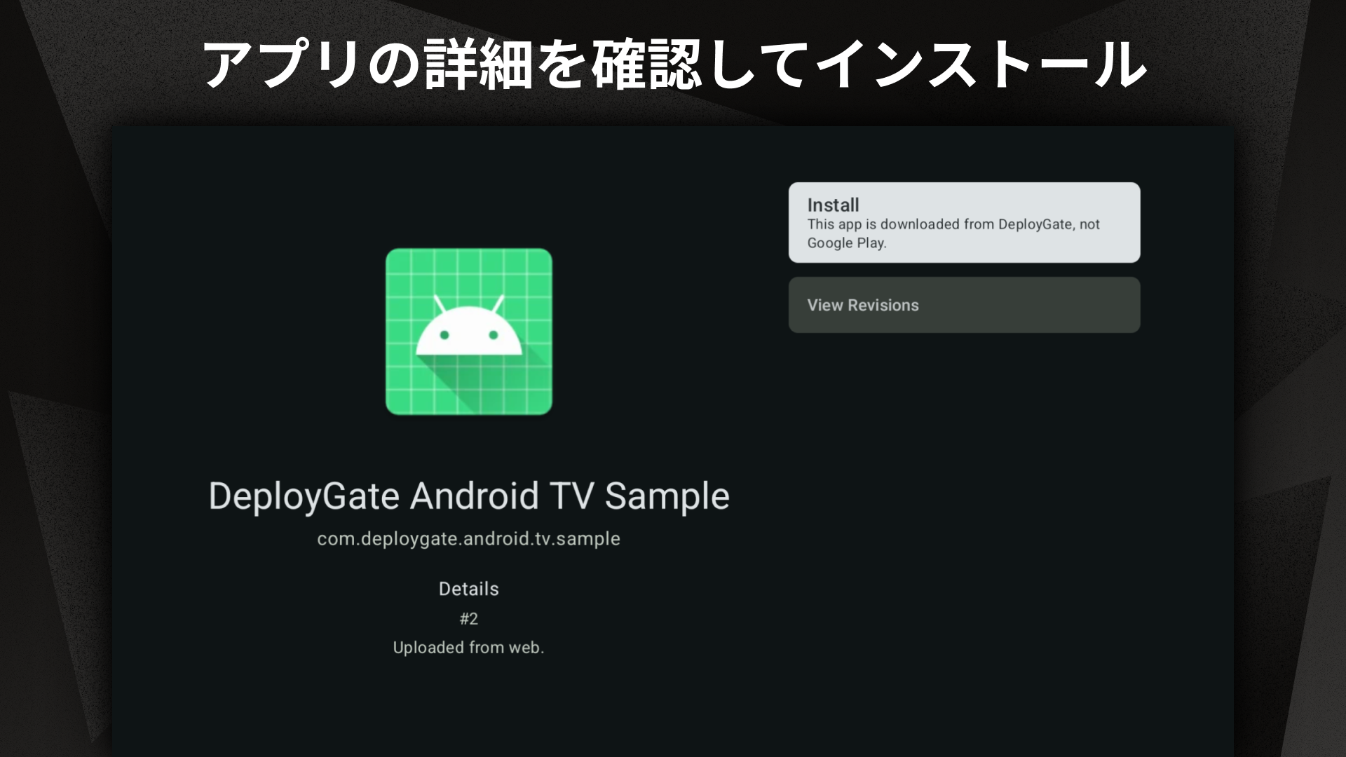 Thank you for your continued support of DeployGate. 1.20.3 has landed, bringing the following changes: - Fixed an issue where restrictive settings could not be changed when installing an app from the DeployGate app. - Fixed an issue where the app installation and uninstallation functions may not be available on specific devices. - Improved the Replay Capture function. - Made other minor improvements.