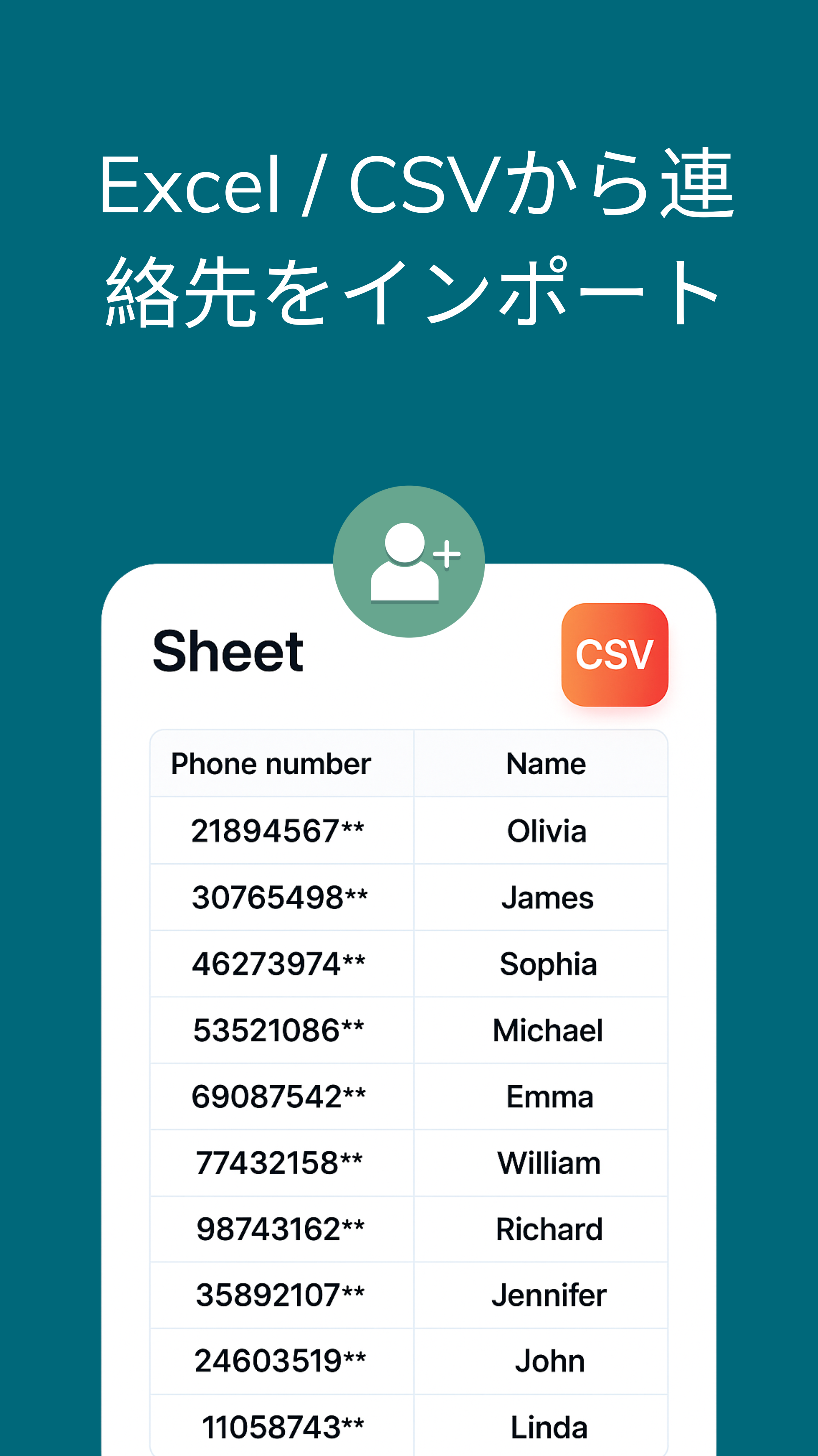 - CSV や Excel ファイルから連絡先を簡単にインポートして一斉送信。