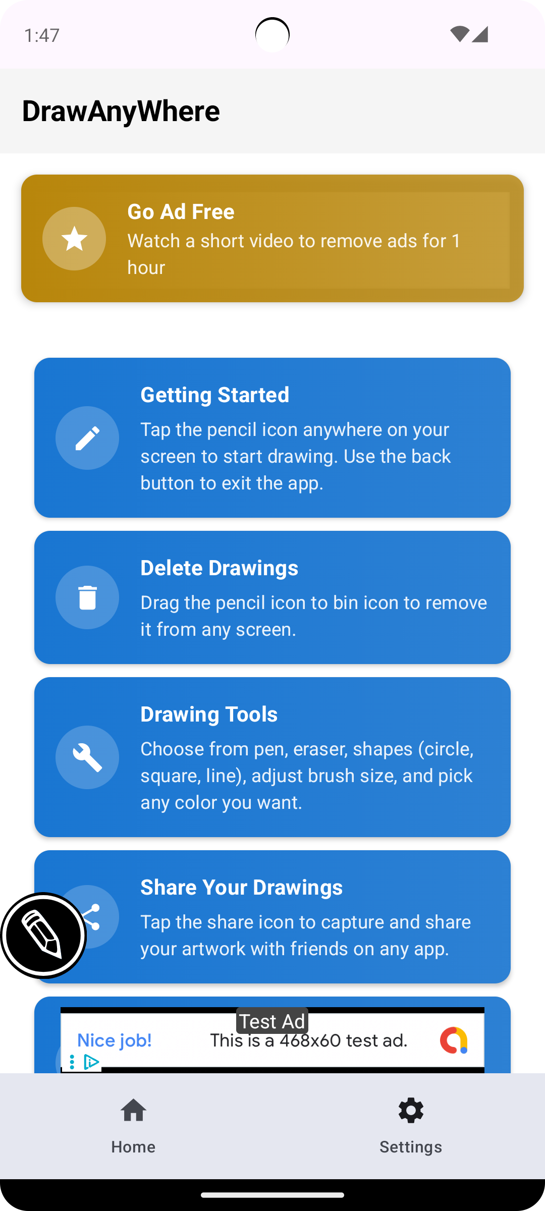 mlwrkzからリリースされた『DrawAnyWhere』はツールアプリだ。apkfab.com/jpから『DrawAnyWhere』のファイルサイズ(APKサイズ):14.62 MB、関連ムービー、pv、スクリーンショット、詳細情報などを確認できる。apkfab.com/jpではmlwrkzより配信したアプリを簡単に検索して見つけることができる。『DrawAnyWhere』に似ているアプリや類似アプリは129個を見つける。現在、Draw Any Where appのダウンロードも基本プレイも無料だ。『DrawAnyWhere』のAndroid要件はAndroid 7.0+なので、ご注意ください。APKFabあるいはGooglePlayから『Draw Any Where apk』の最新バージョンを高速、安全にダウンロードできる。APKFab.com/jpでは全てのAPK/XAPKファイルがオリジナルなものなので、高速、安全にダウンロードできる。