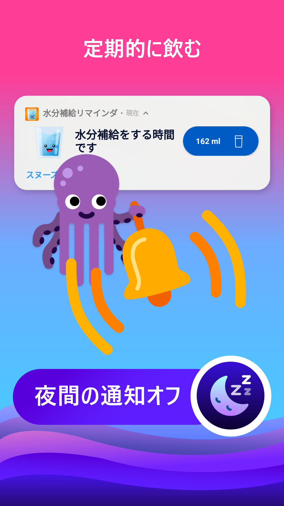 水分補給リマインダーはあなたの毎日の水分補給量を記録し、必要な量を摂取できるように通知をします。私たちのアプリはスマートな通知とその他沢山の役立つ機能によってあなたの健康的な習慣づくりを完全無料で手助けいたします!