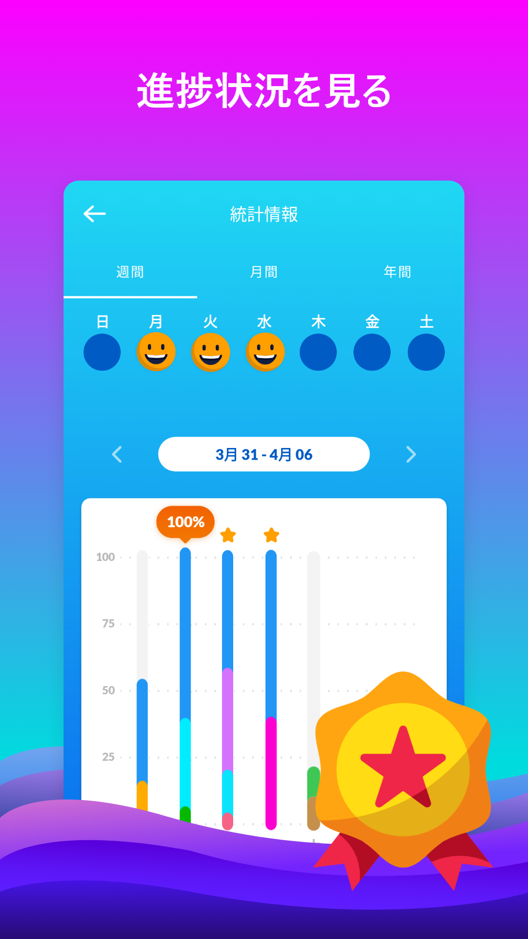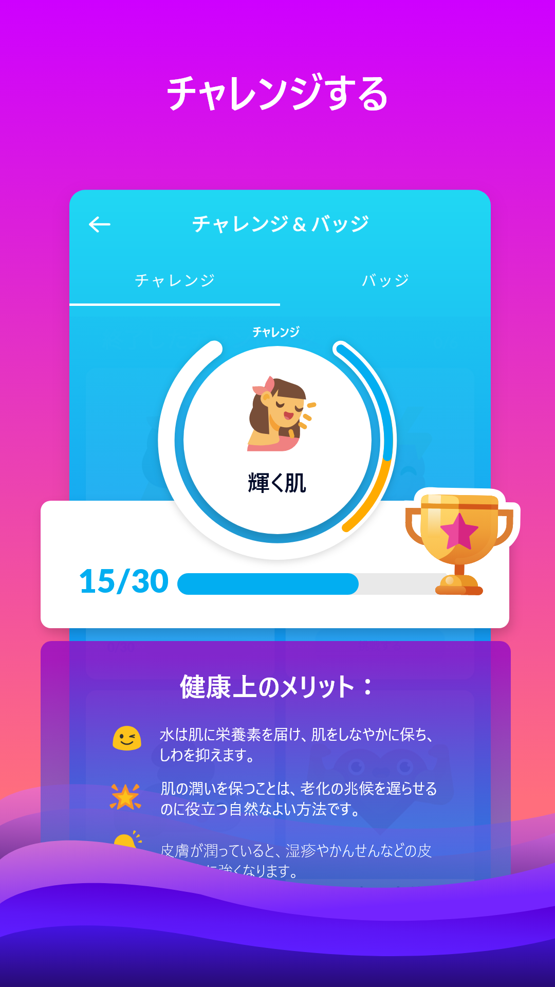 何日間水分補給を続けてきたのかを見ることによってモチベーションをアップし、効果的な習慣づくりをしましょう!