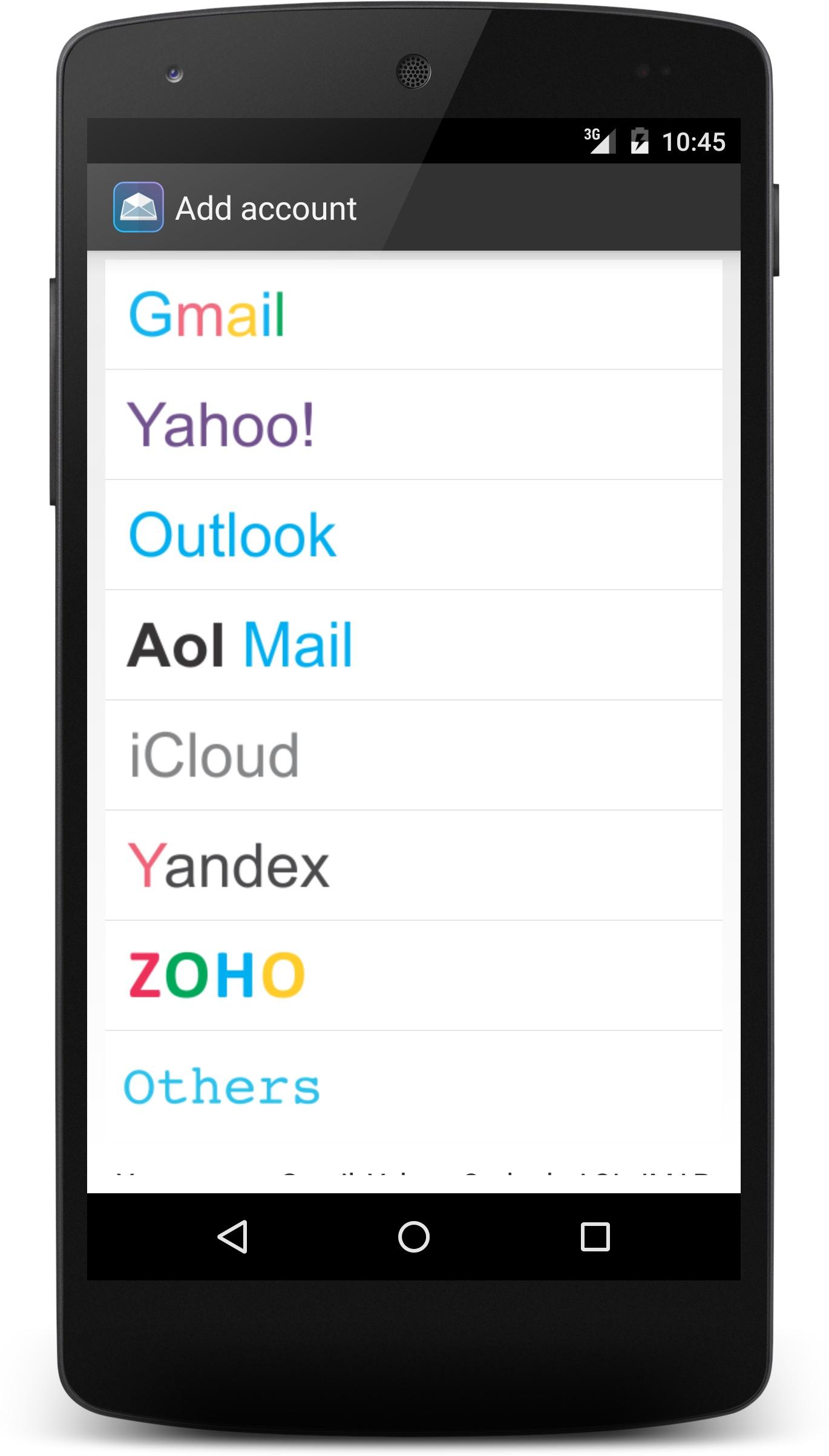 -Added support for more account : icloud, yendex and zoho mail