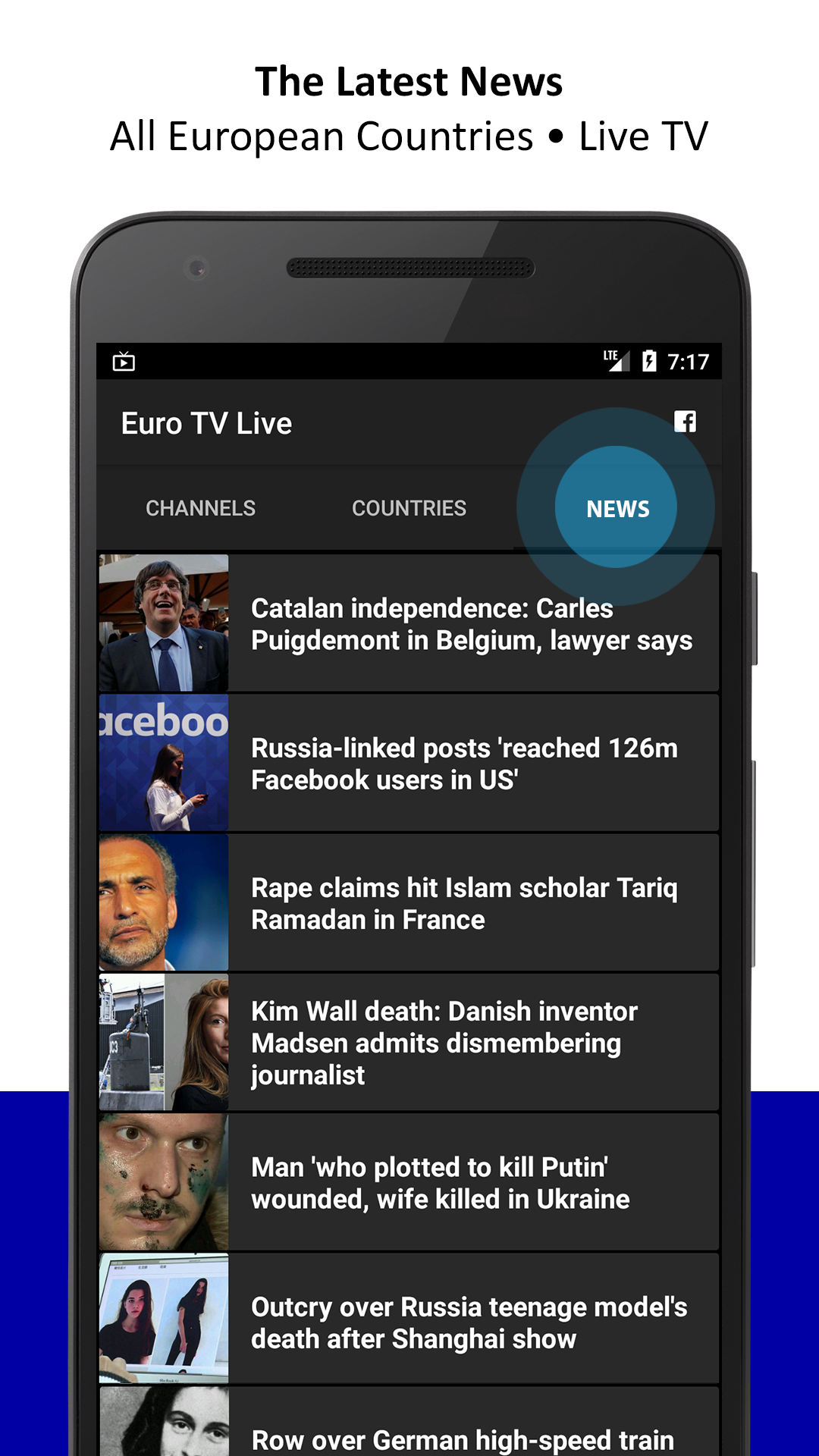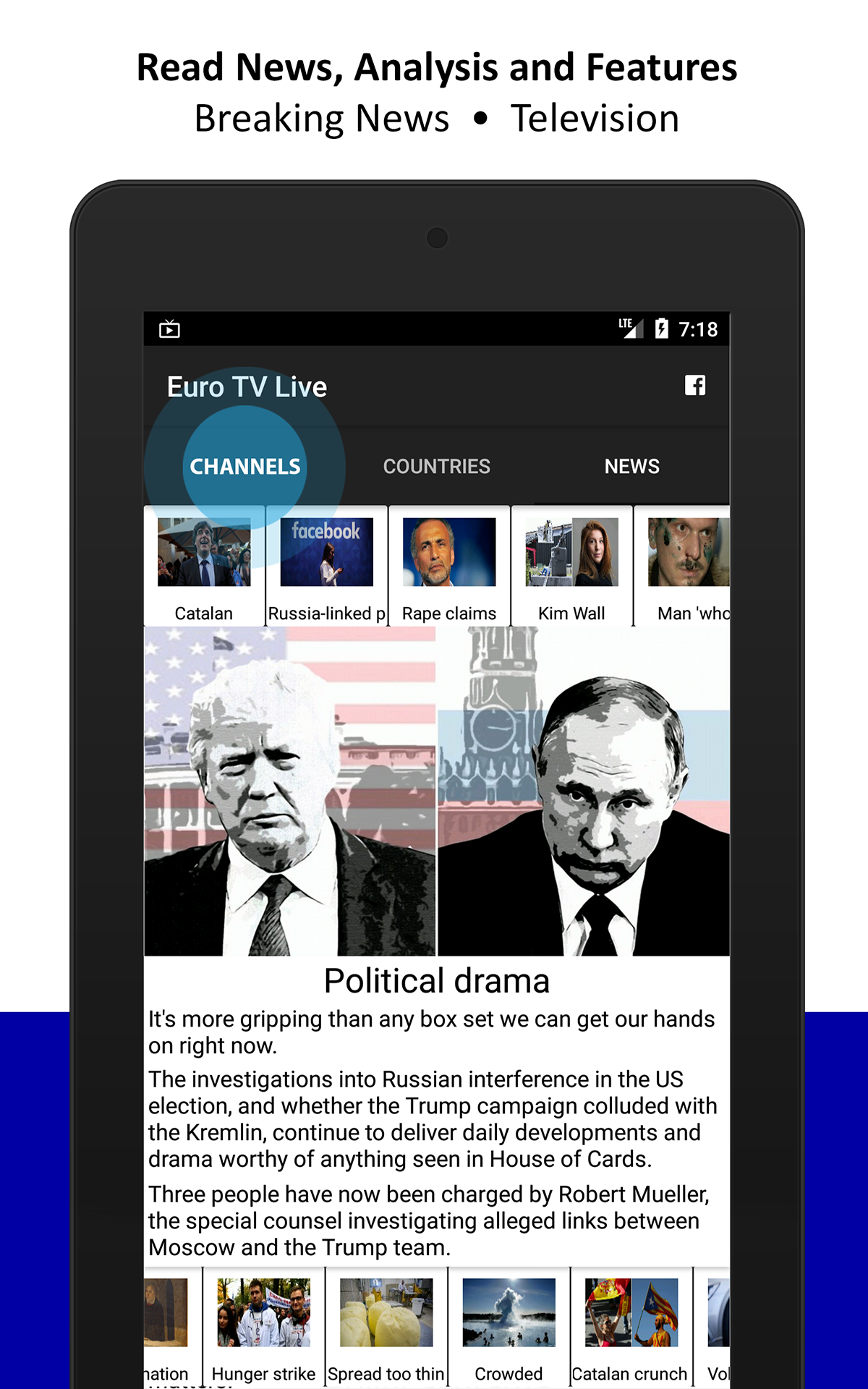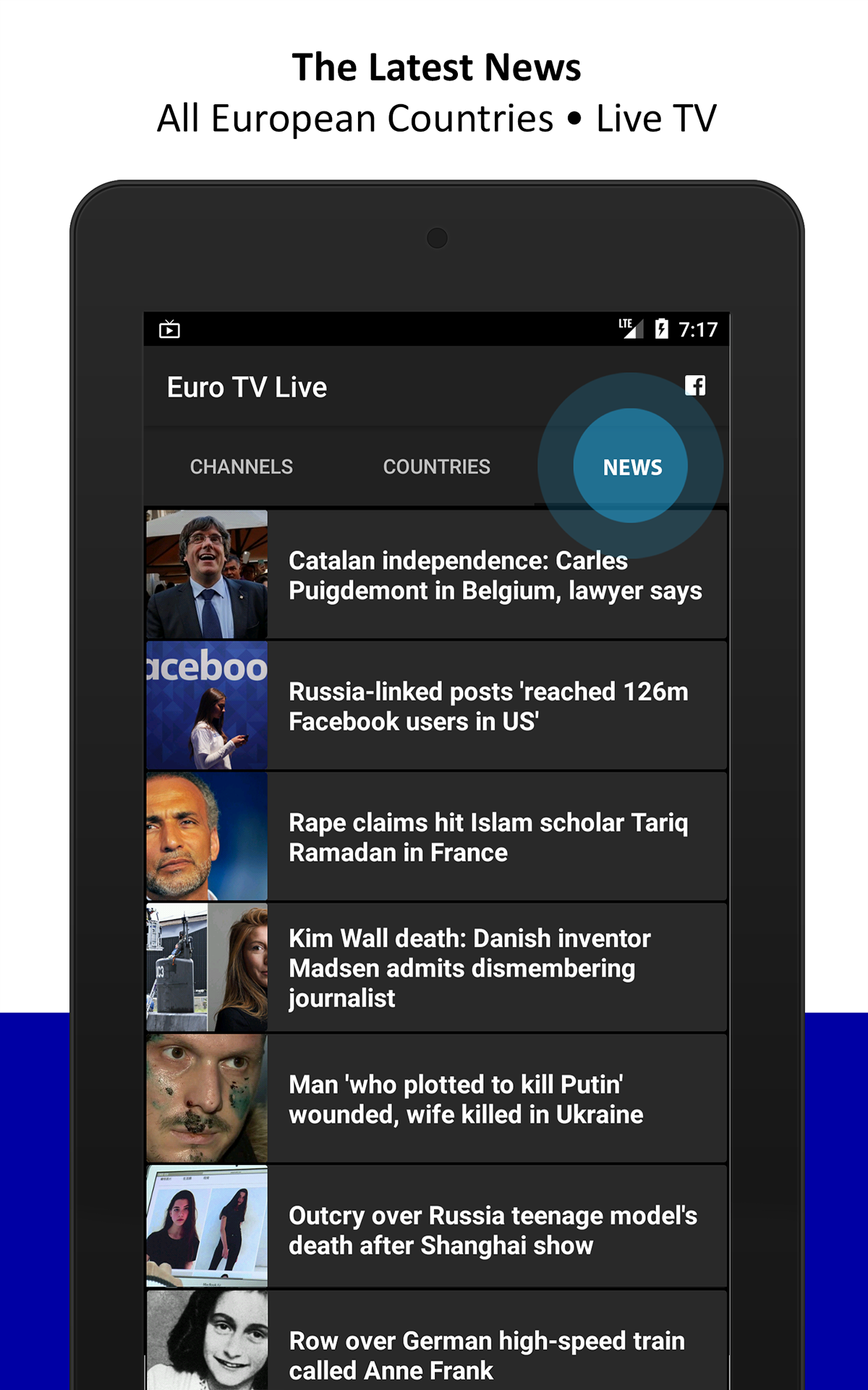 With the Euro TV Live - Television App you can watch your favorite series, news, documentary films, movies of Europe channels on your mobile device for FREE of charge and without registration!