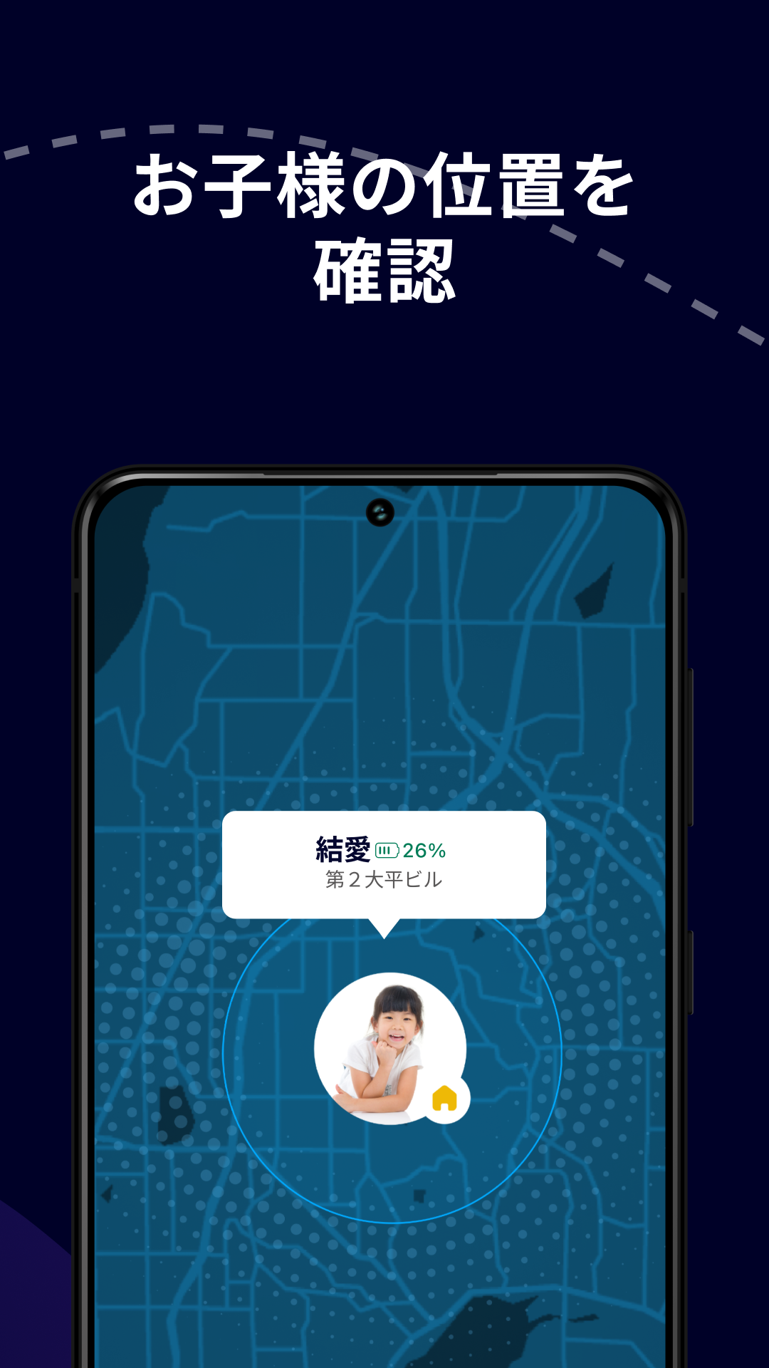 - 頻繁に更新されるお子様の位置情報を確認できます。