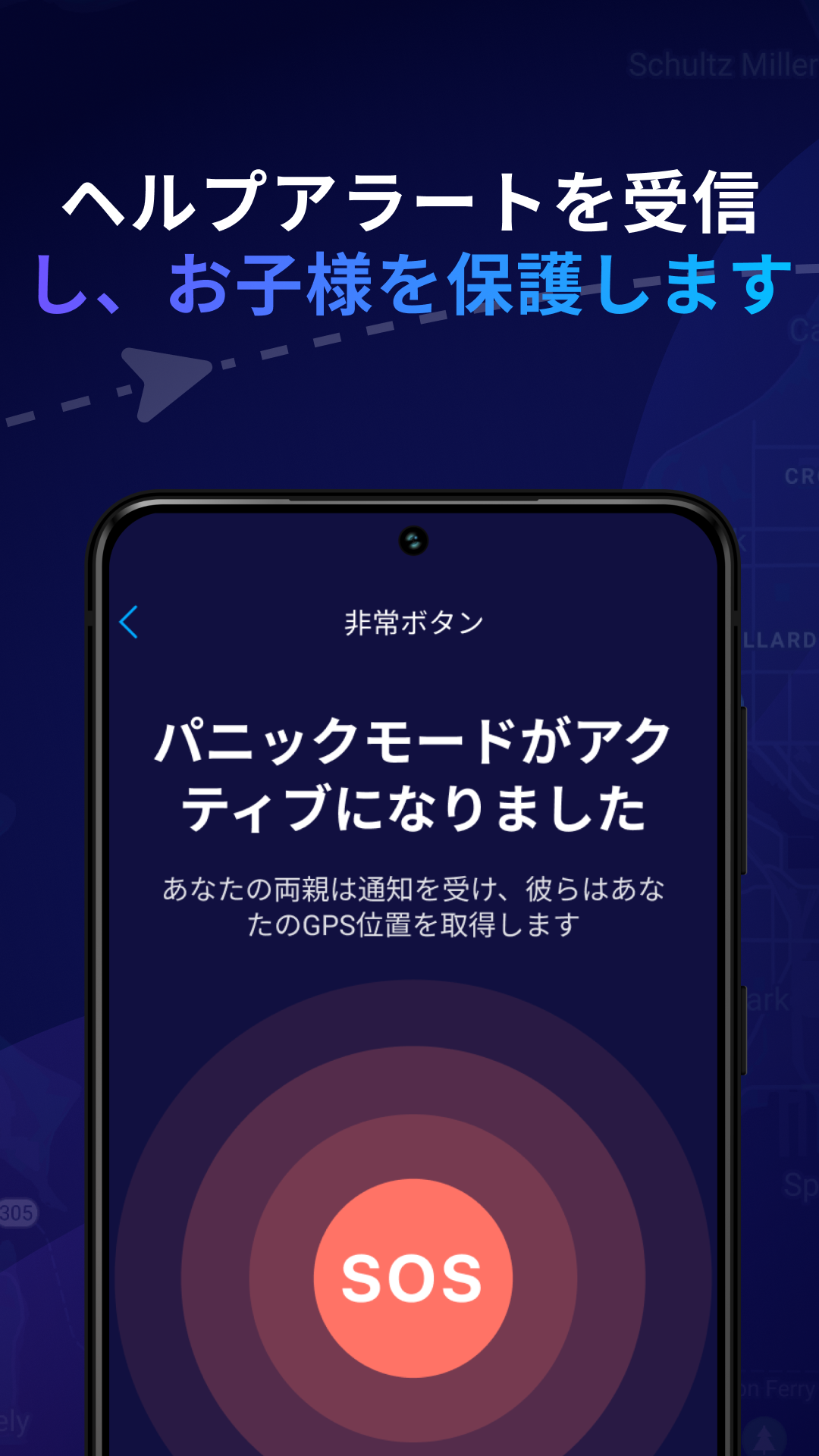 - お子さまが危険な状態にある場合、パニックボタンを押してすぐにアラートを送信できます。