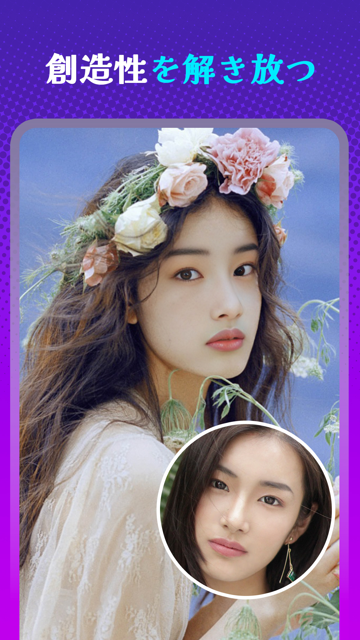 AIテクノロジーを使用して、顔をコピーしてお気に入りのスーパーヒーロー、有名人、静止画に貼り付け、リアルな写真を作成してソーシャルメディアで共有します。高度な顔のテクノロジーを使用して性別を変更します。顔を変える写真編集アプリだけで、まったく別の自分に変えることができます。