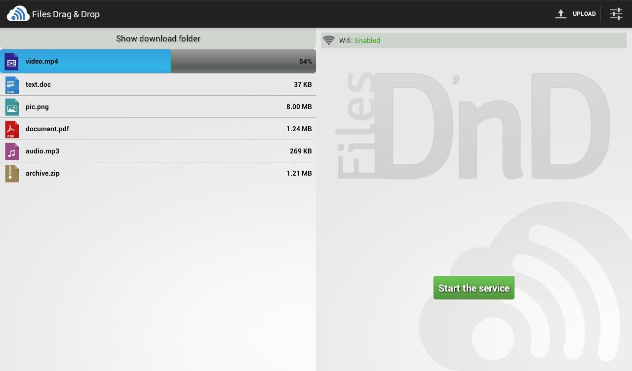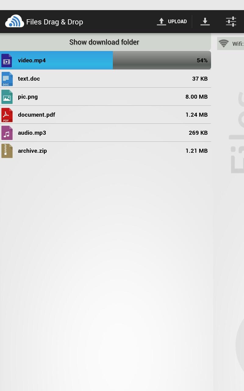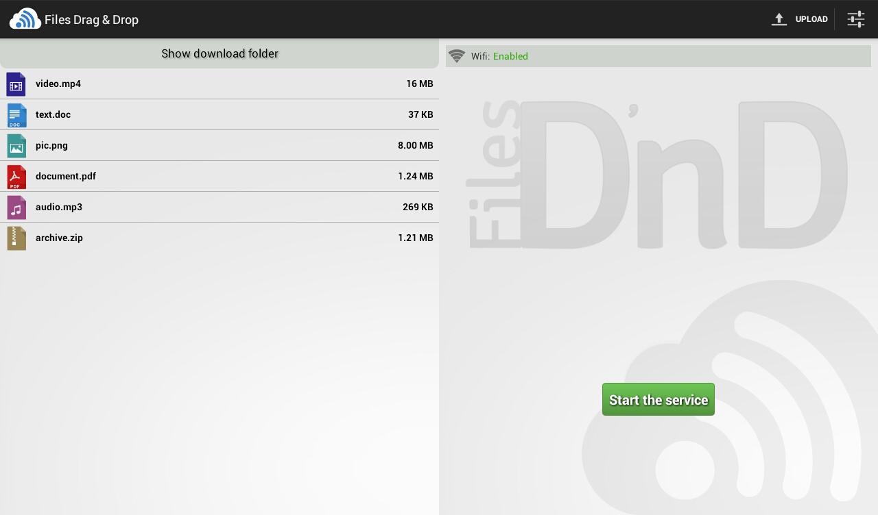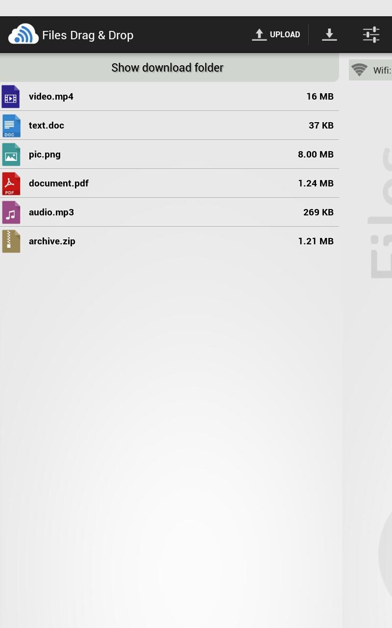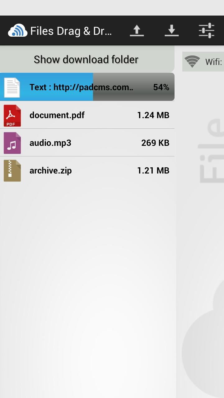 Files Drag & Drop is an application that allows you to transfer data (files/text/url) quickly from your computer to your Android device and vice versa, using wifi networks.