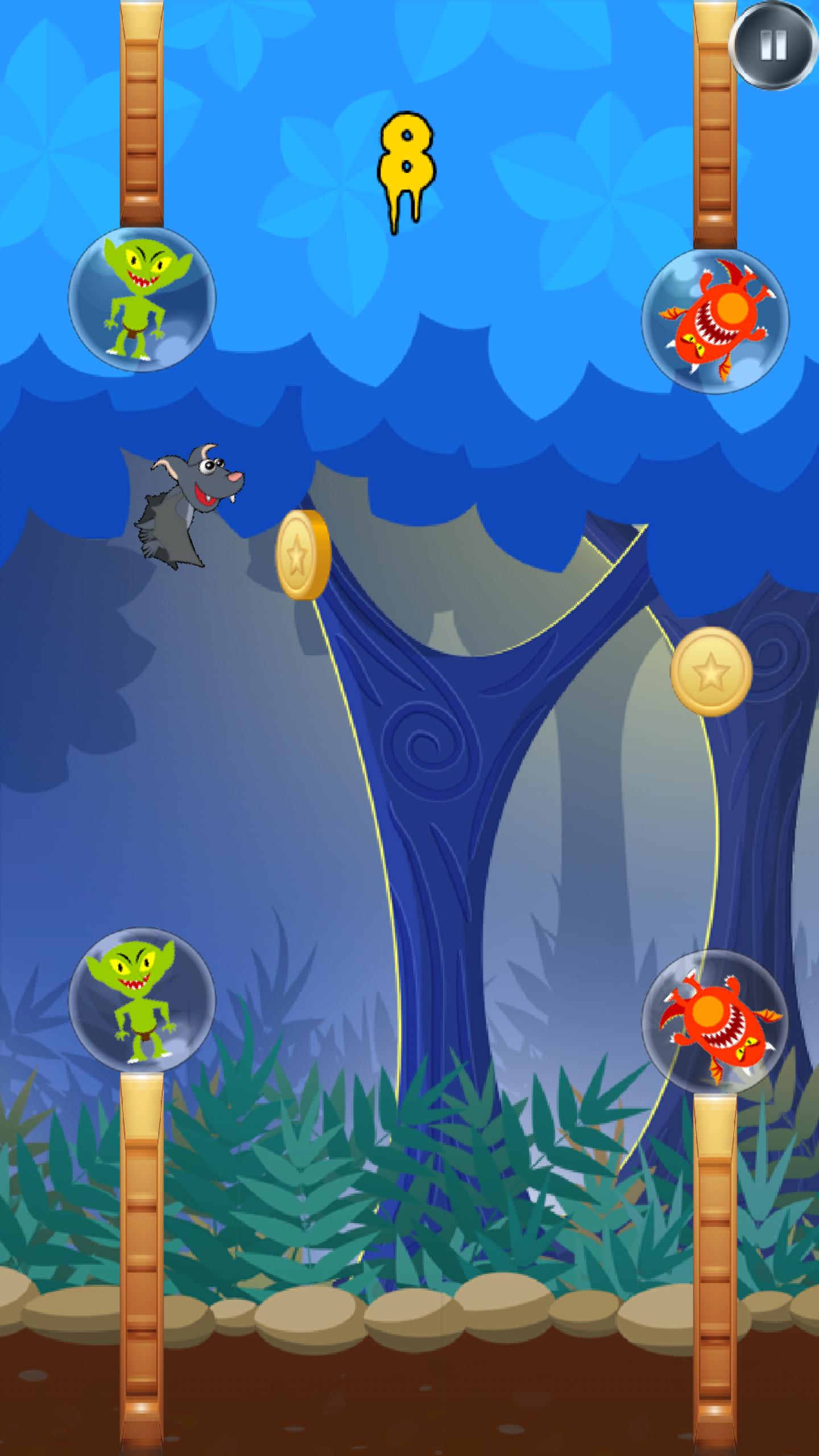Playing this Flappy Bat game is a real pleasure: the haunted forest background, the bat, and scary sounds are a real treat. The app integrated features are cool tools to enjoy.