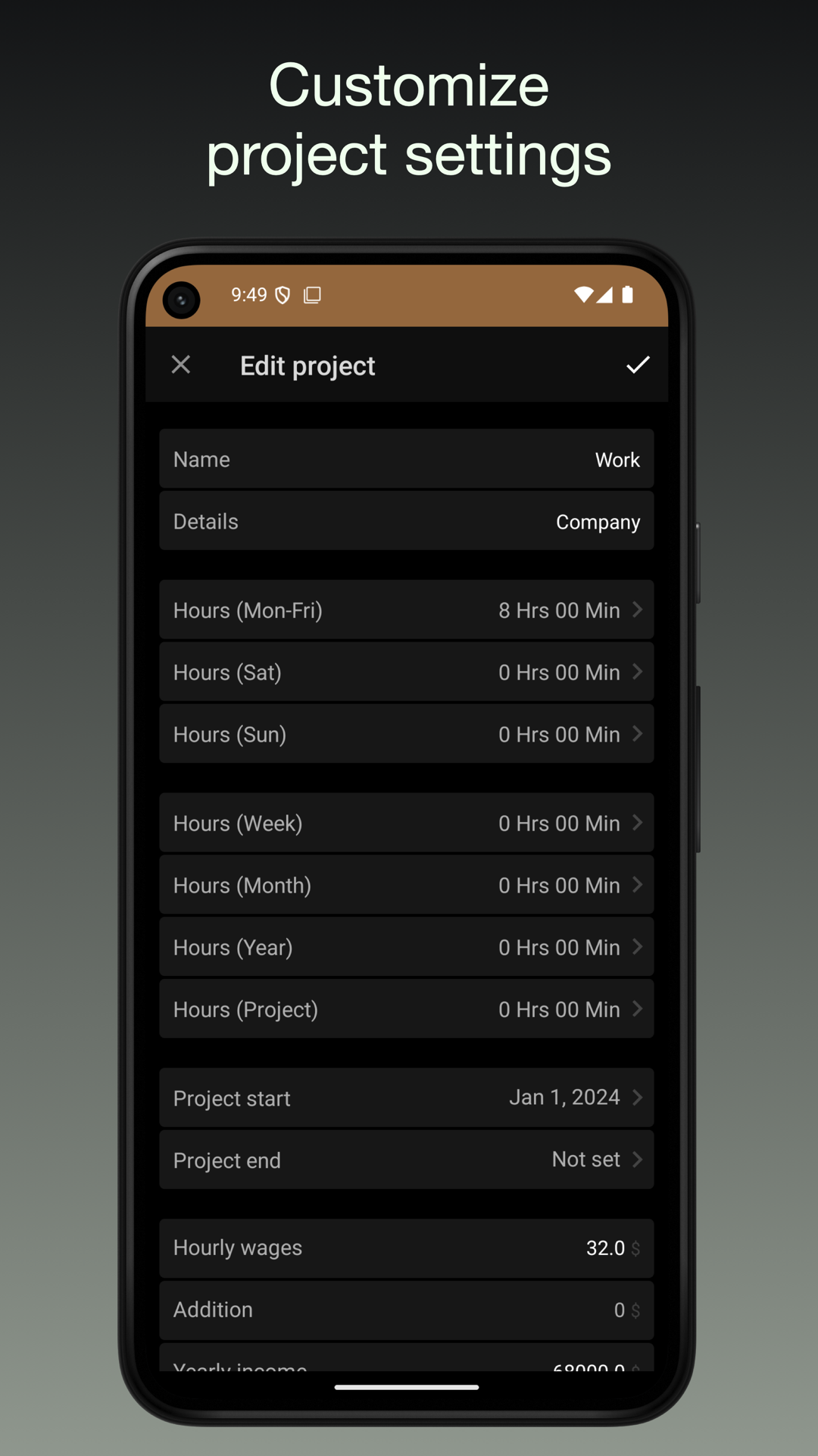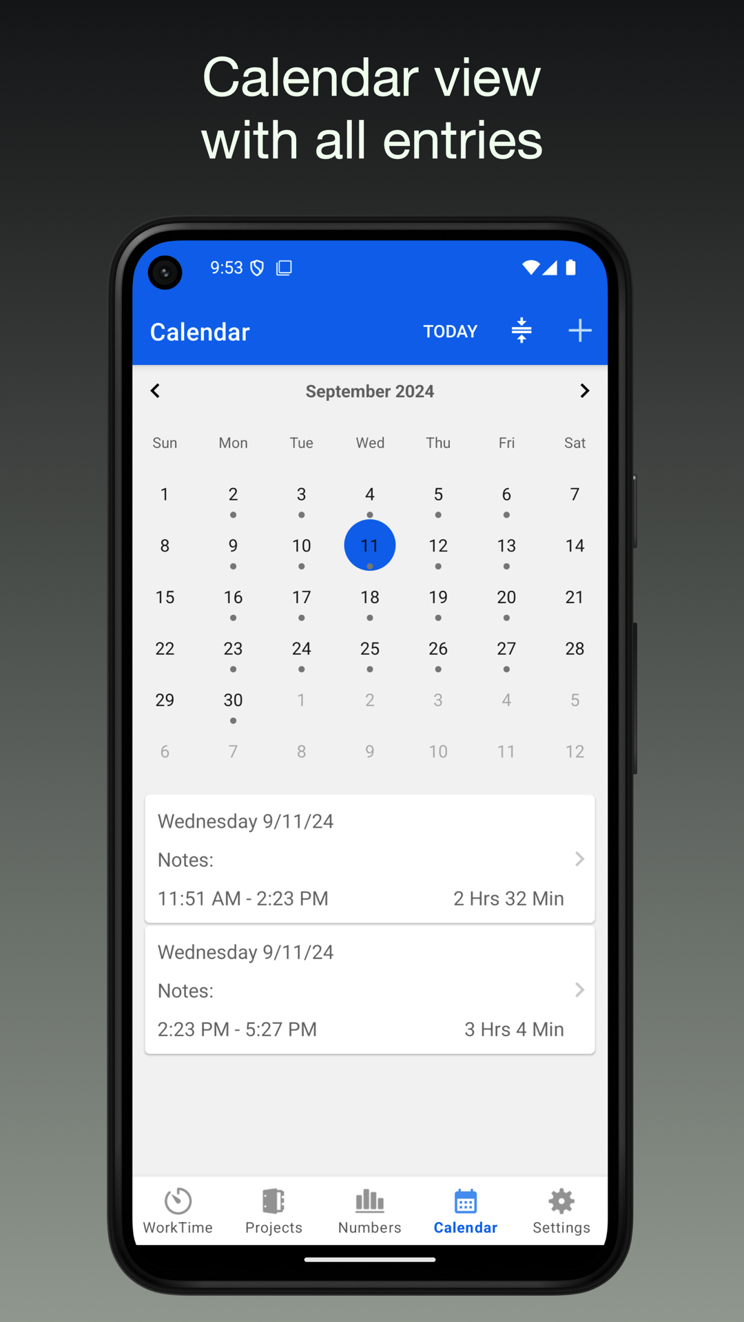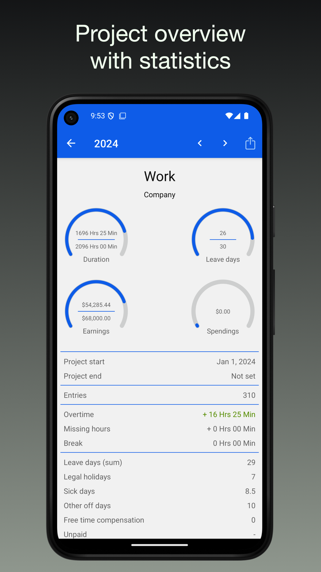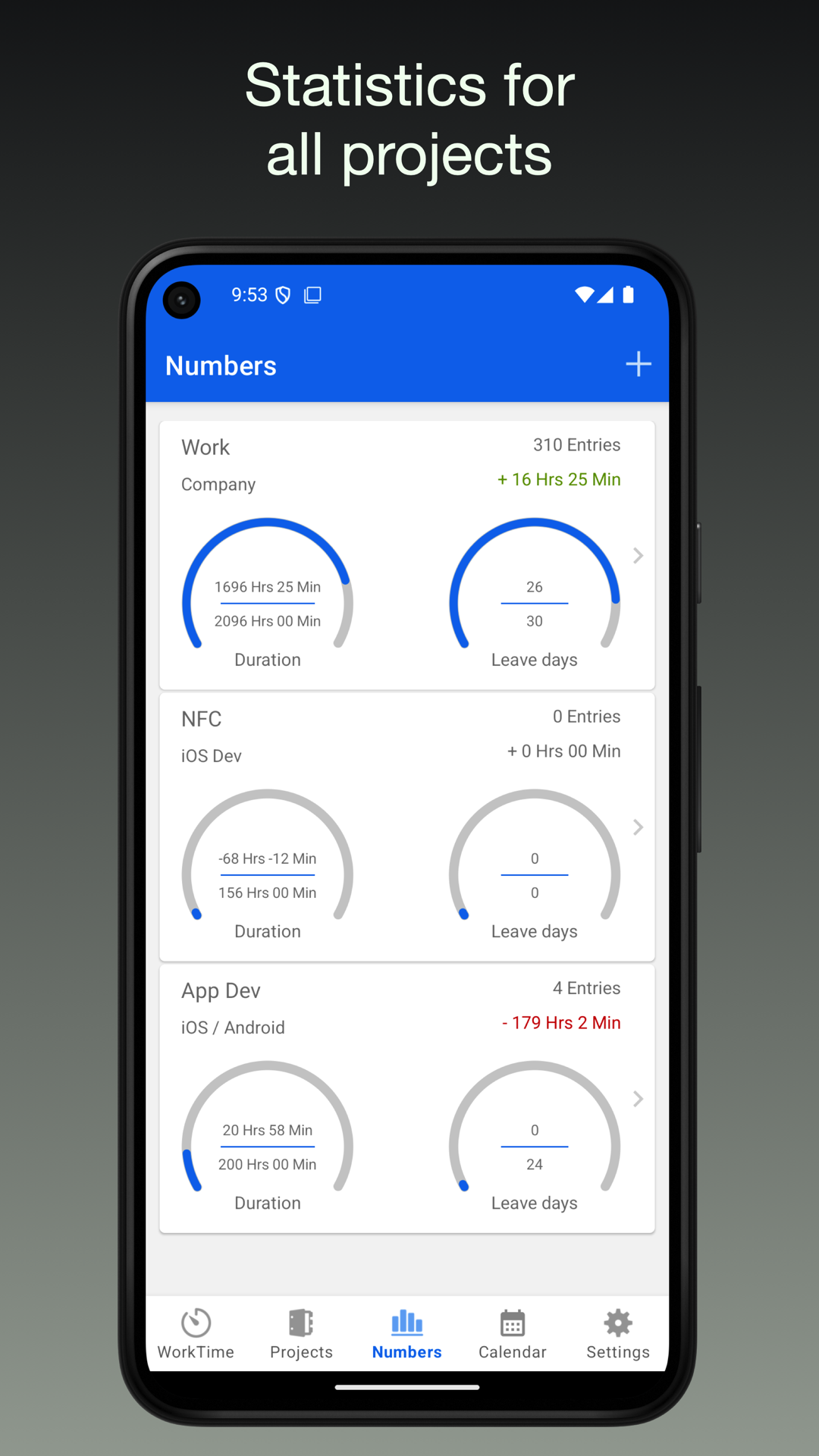 - ログイン/ログアウトボタンで勤務時間を追跡します