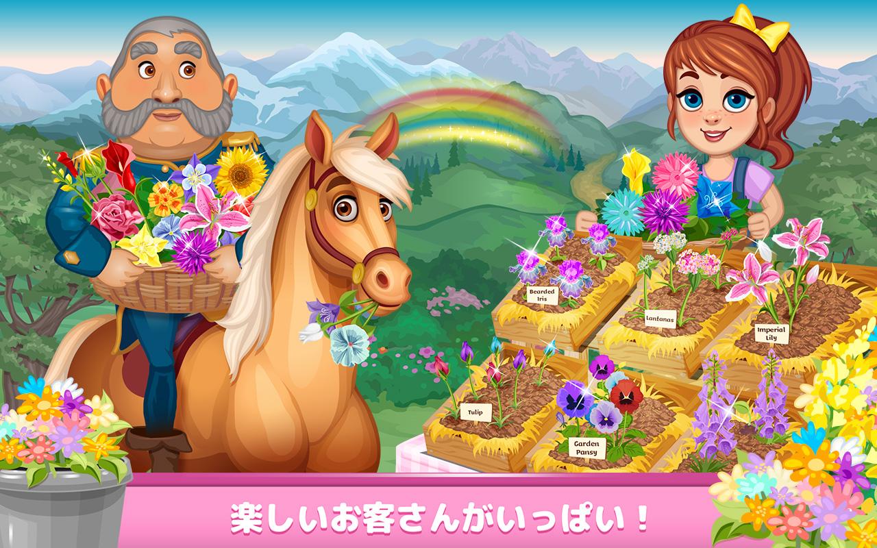 花を育てる能力を発揮する用意はできたかな?町のみんながあなたは最高のお花屋さんでフラワーガールだと言っています!でも、きれいな花のお庭を作るには、たくさんの作業と想像力が必要です!ダルメシアンの子犬スポットや、ぶーぶーぶたちゃんなど、キュートなペットたちに助けられて、素敵な花のお庭を作るため花を植えましょう!お客さんの好きな花を植えて、掘って、お水をあげて、世話をして、みんなをハッピーにしましょう!