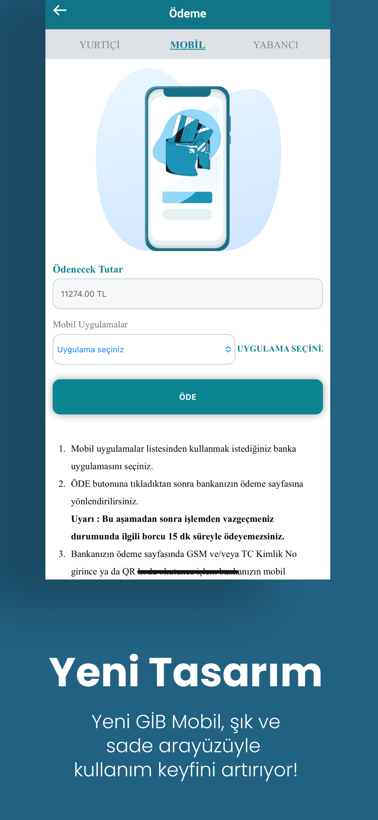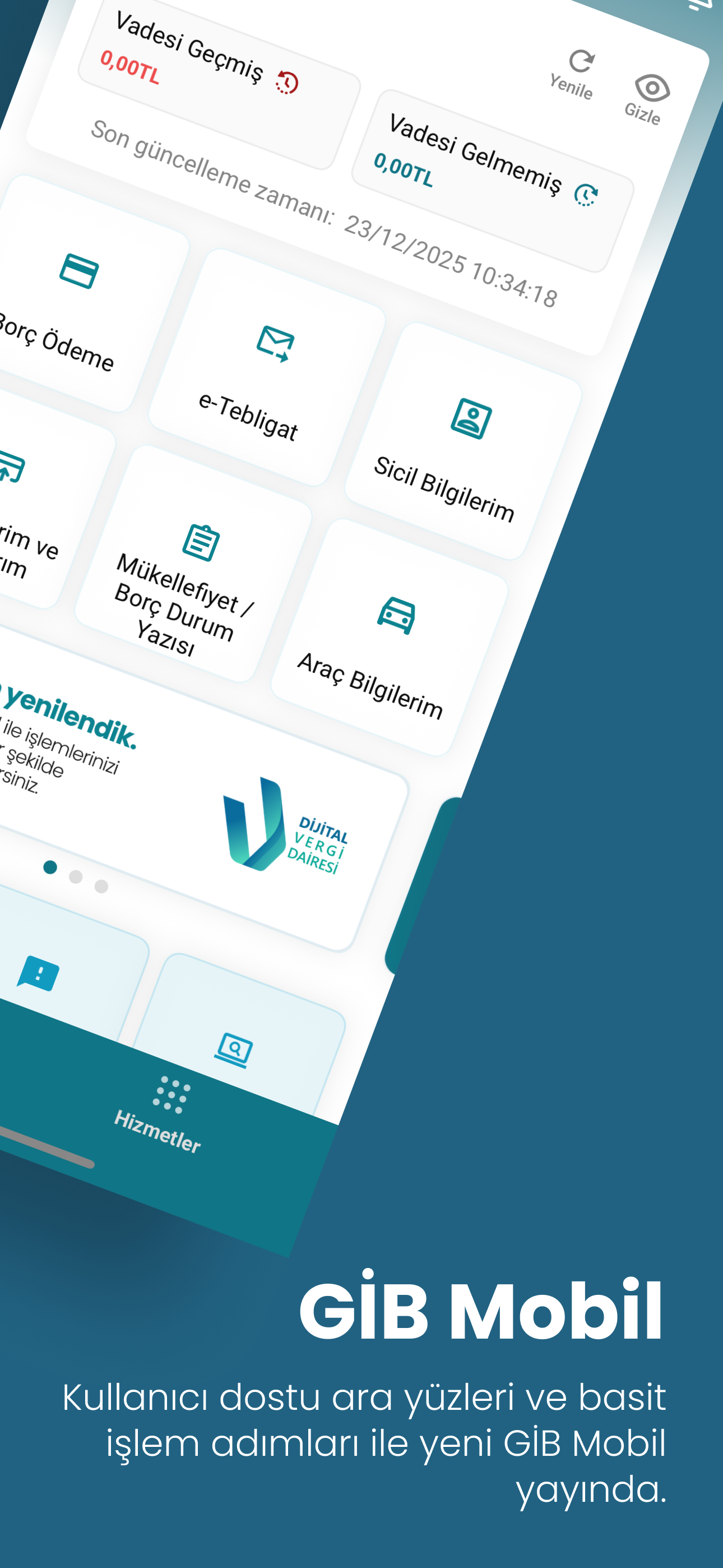 Bu güncelleme ile; Size daha iyi hizmet verebilmek için yazılım geliştirme eko sisteminde son teknolojiler kullanılarak fonksiyonel ve kullanışlı ekranları ile performans iyileştirmeleri yapılarak uygulamamız yenilenmiştir. Vergisel işlemlerinizi vergi dairesine gitmeden, hızla ve güvenle gerçekleştirmek için GİB Mobil uygulamamızı tercih edin.