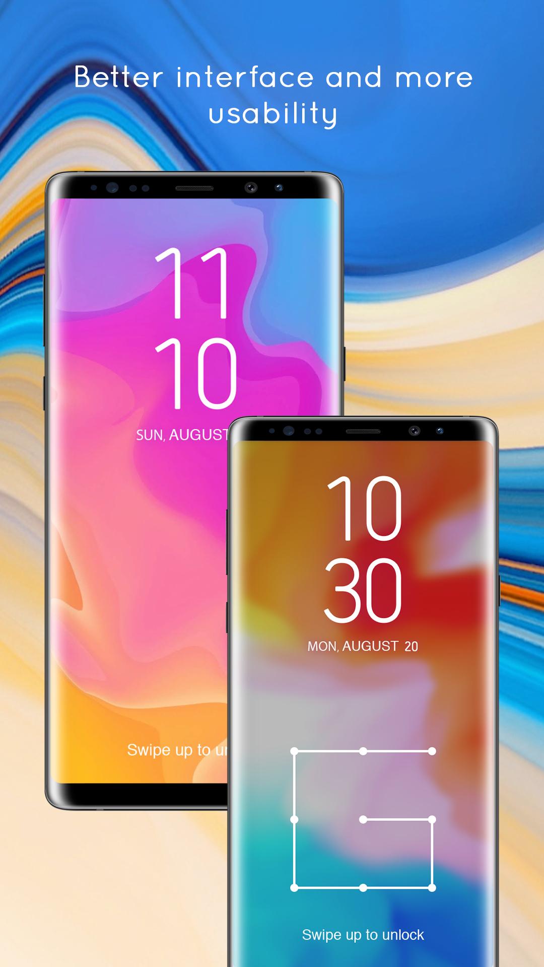 🥗 Galaxy Note 9 LockScreen contains high quality lockscreen effects for your Android phone. It is a free lockscreen with many cool and nice features. Galaxy Note 9 LockScreen will also provide custom lock screen to your smartphone with all different theme. The app does everything which a lock screen would provide like showing notifications, setting up locks with a pattern, pin, password and even fingerprint scanning (if and only if the device has the capable hardware).