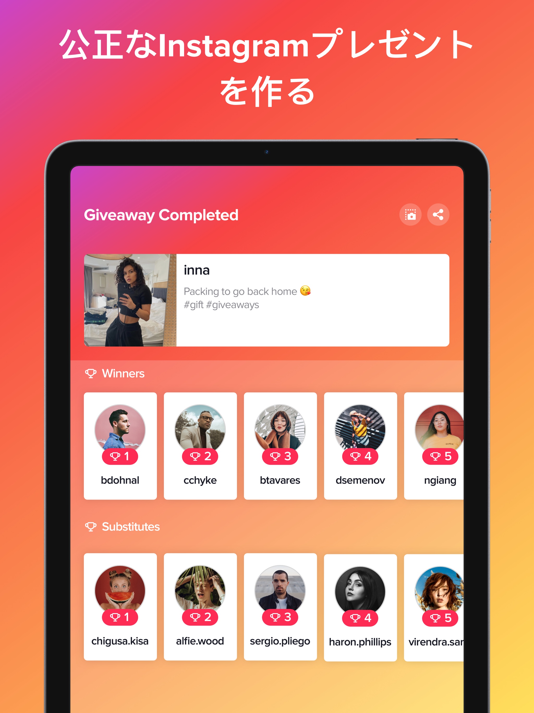 インスタコメント抽選アプリ