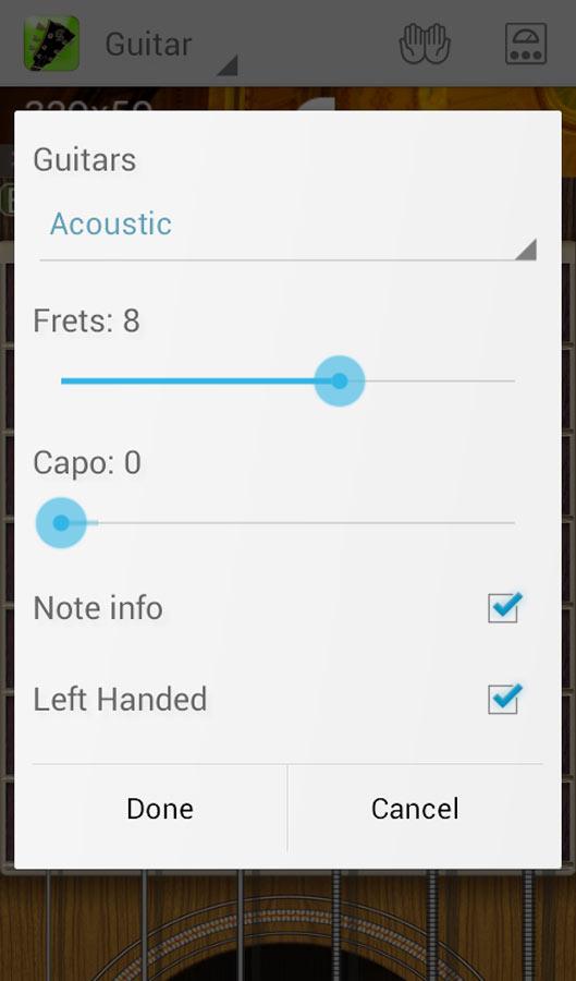 Guitar Droid lite is also designed for left-handed and is fully configurable: