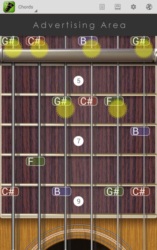 Guitar Droid lite is a multitouch configurable guitar with 24 scale types, 18 chord types, configurable tunings, sound effects and audio engine with up to 16 simultaneous voices .
