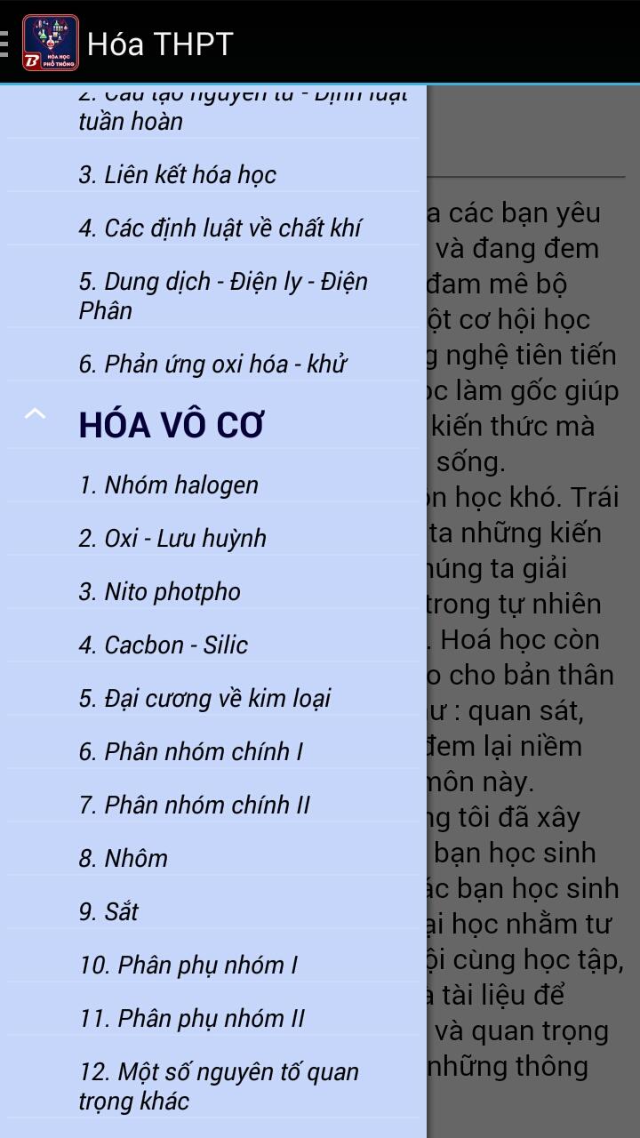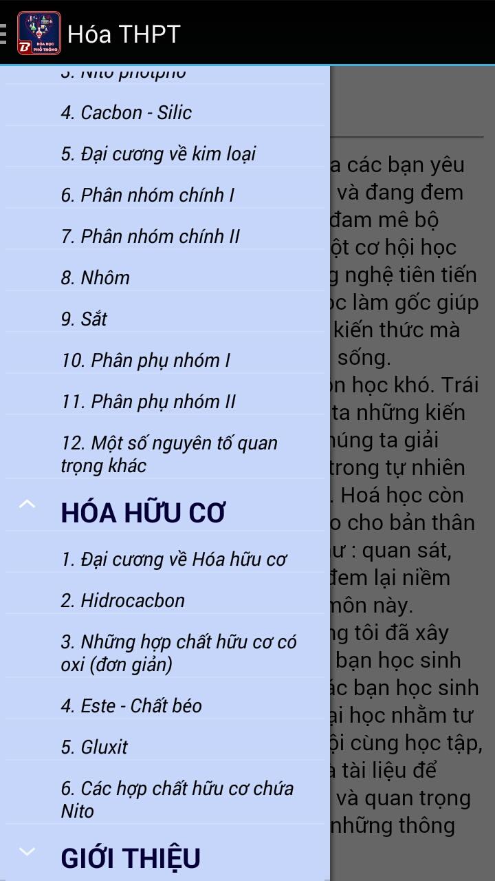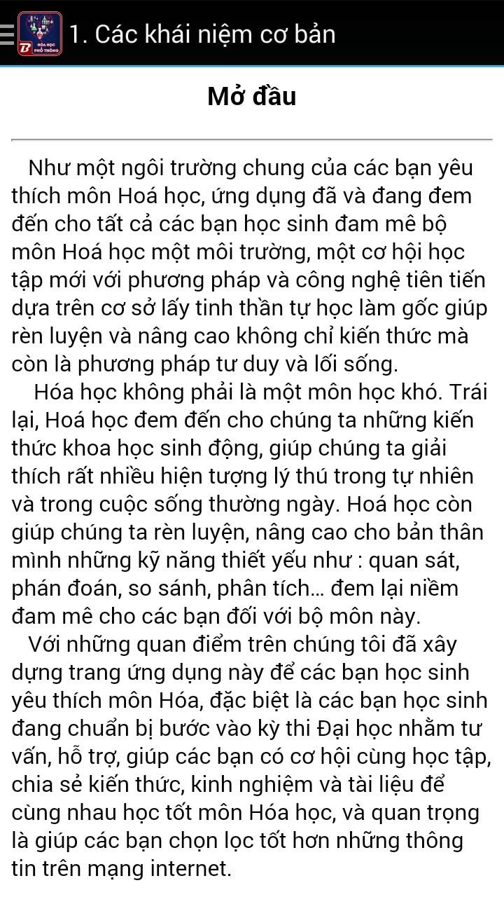 "Hoa THPT" hay "Hóa THPT” là gì? Hóa phổ thông là kiến thức Hóa được tổng hợp từ “Hội Hóa học” Việt Nam. Do các thầy giảng viên, thạc sĩ các trường ĐH nổi tiếng biên soạn. Hóa phổ thông cung cấp kiến thức cho các bạn “Học sinh cấp 3” , các bạn “Sinh viên” các trường “Đại học” và “Cao đẳng” . Kiến thức Hóa sẽ được tổng hợp về kiến thức và nội dung. Giúp các bạn “HS-SV” dễ dàng nắm bắt các kiến thức về Hóa. Ứng dụng này cũng giúp ích cho các bạn học sinh chuẩn bị cho kỳ thi “Tuyển sinh đại học” (“thi vào đại học”). Ứng dụng này được xem như “sổ tay Hóa học” cho mọi người. Lưu ý : hãy nhấn vào giữa màn hình và chỉnh độ zoom cho hiển thị nhé! Bạn có thể xem lại kiến thức Hóa khi đi du lịch, ở phòng ngủ hay ở quán nước. Chúng tôi luôn lắng nghe các bạn. Hãy gởi mail cho chúng tôi khi gặp bất cứ vấn đề gì khi sử dụng ứng dụng này. Email : [email protected] Thankyou!