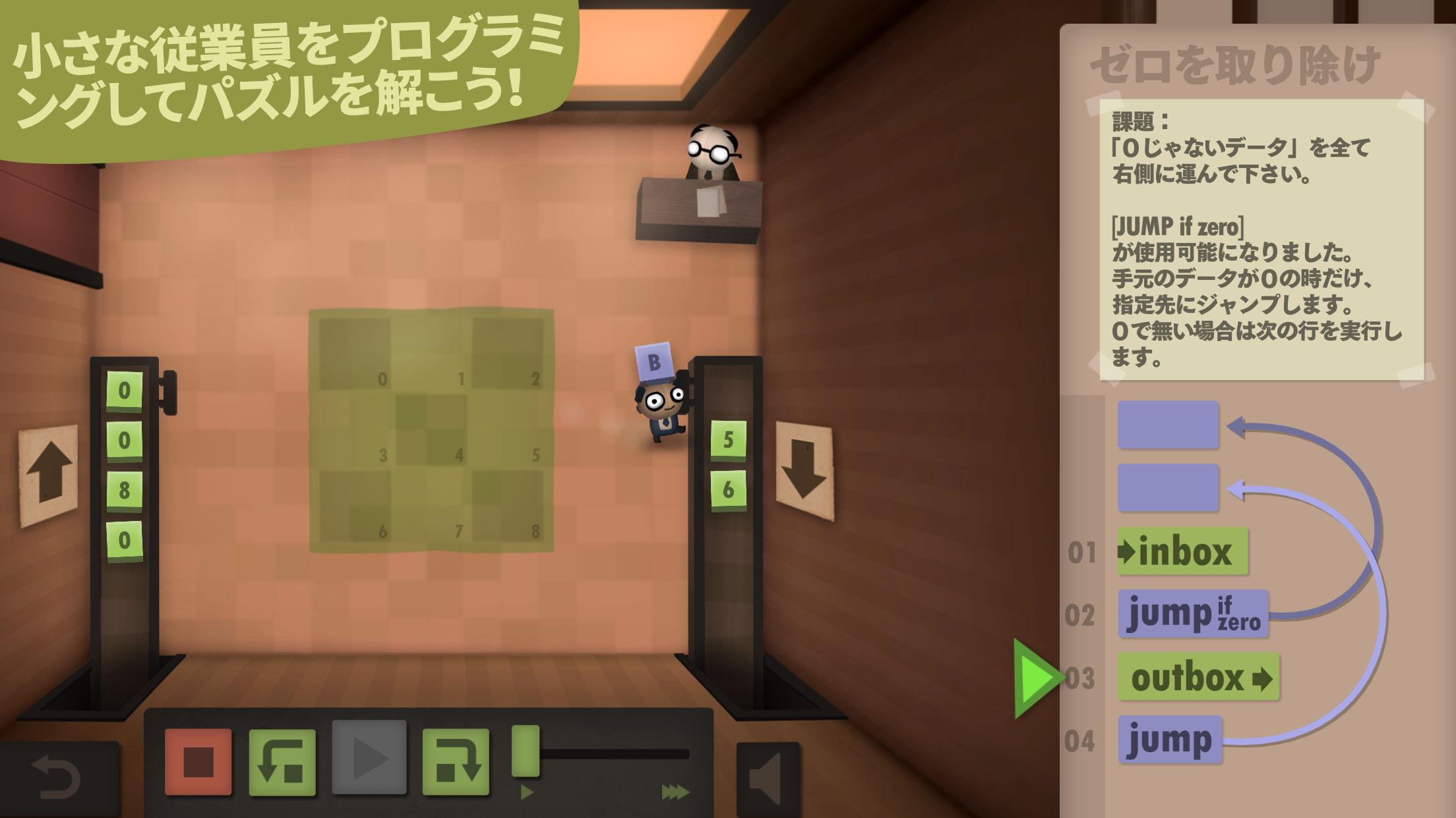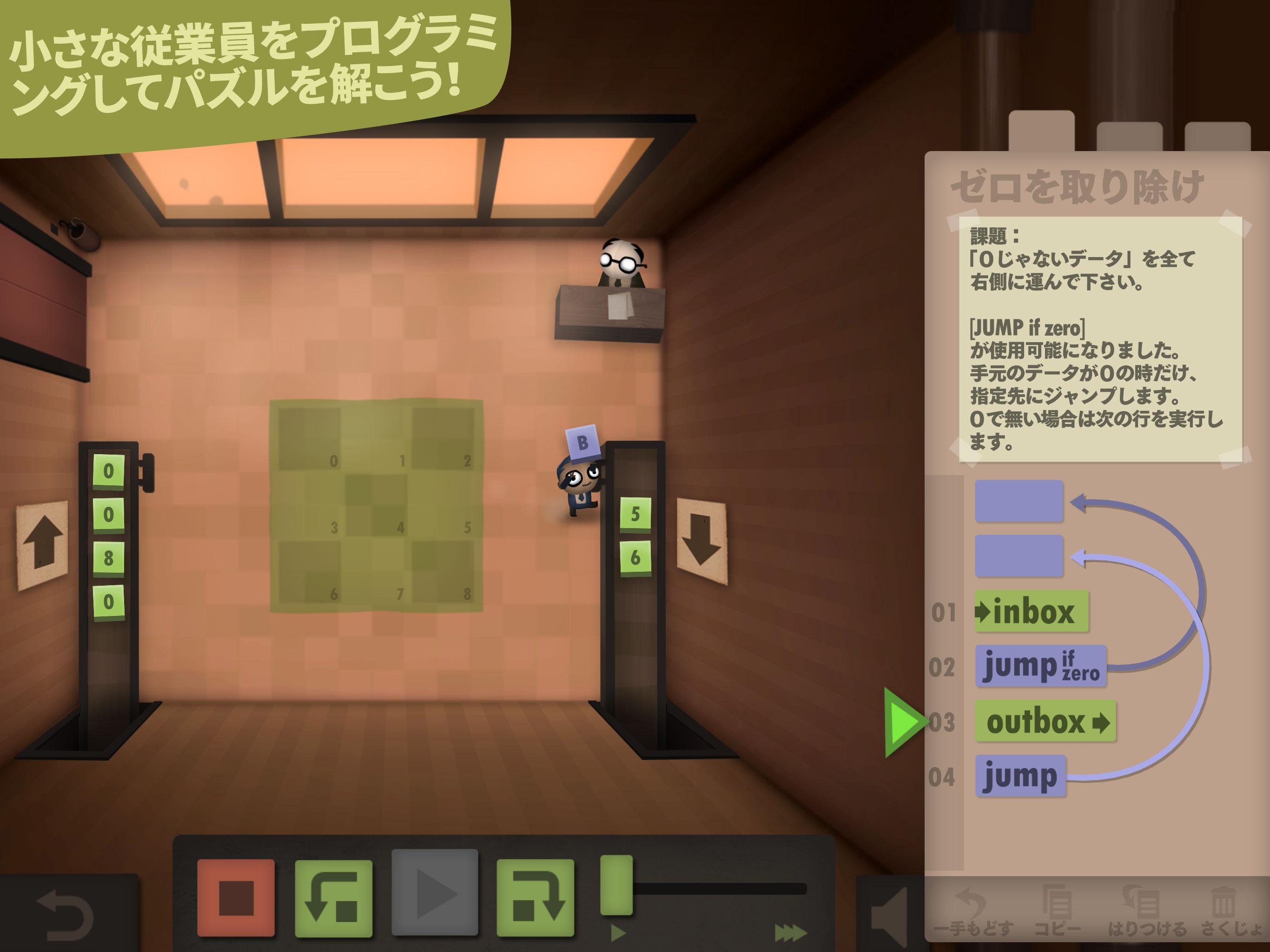 コマンドで社員たちを動かしてパズルを解いていきましょう! 受賞作品「ヒューマン・リソース・マシン」の続編登場!人口増量中!